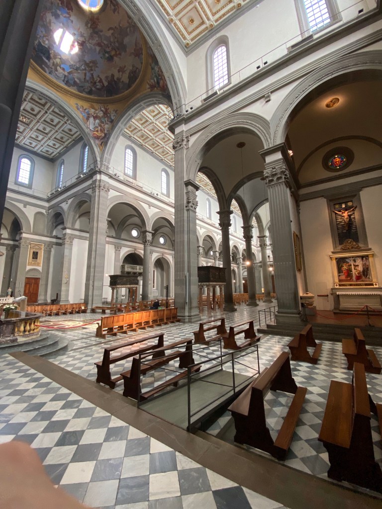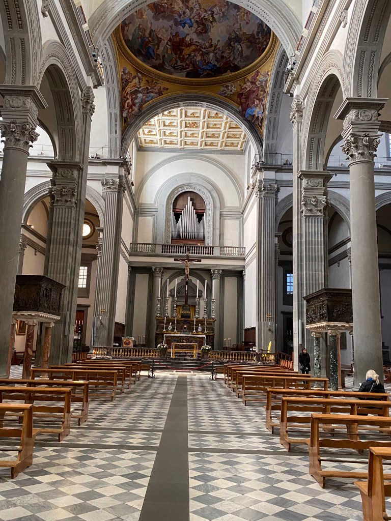 In terms of hallowed ground in Florence, it doesn’t get much better than this. This fine Renaissance basilica, designed by Brunelleschi, is at least the 2nd church to occupy this spot.