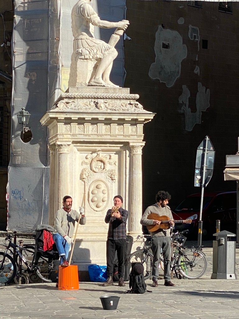 Sunny, warm January day in a major Florentine piazza! What could be better? Even the buskers were great!