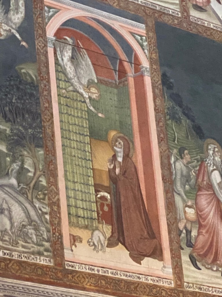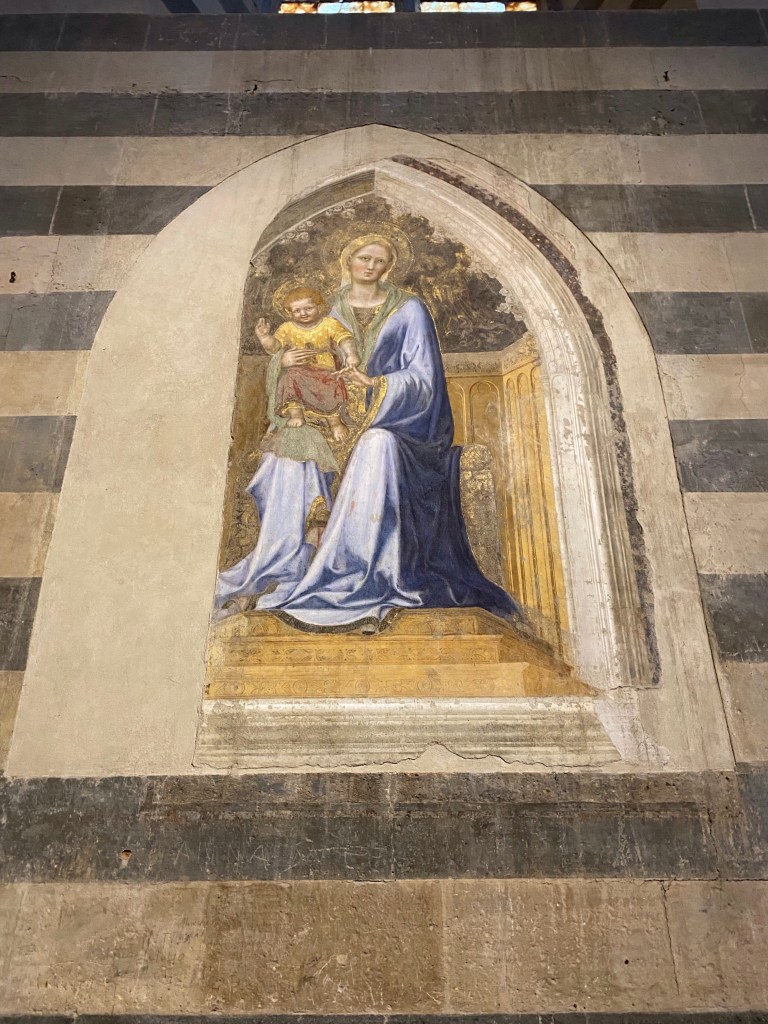 In a niche on the right wall stands a panel of the Madonna dei Raccomandati (c. 1320). It was painted in the Italian Byzantine tradition by the Sienese artist Lippo Memmi, brother-in-law of Simone Martini.