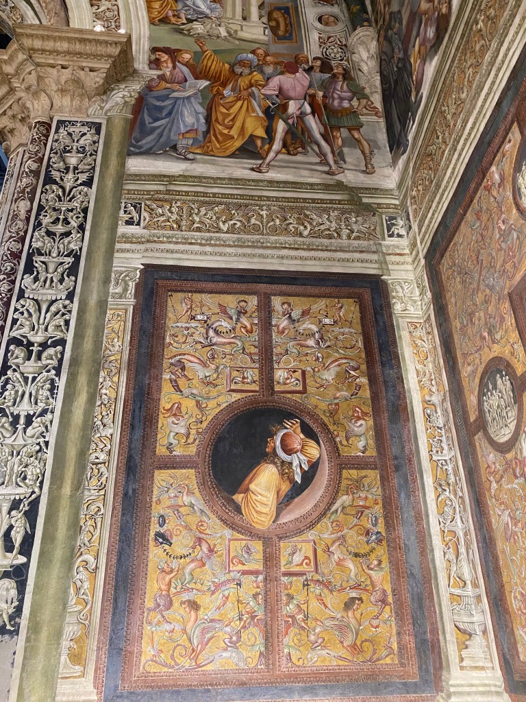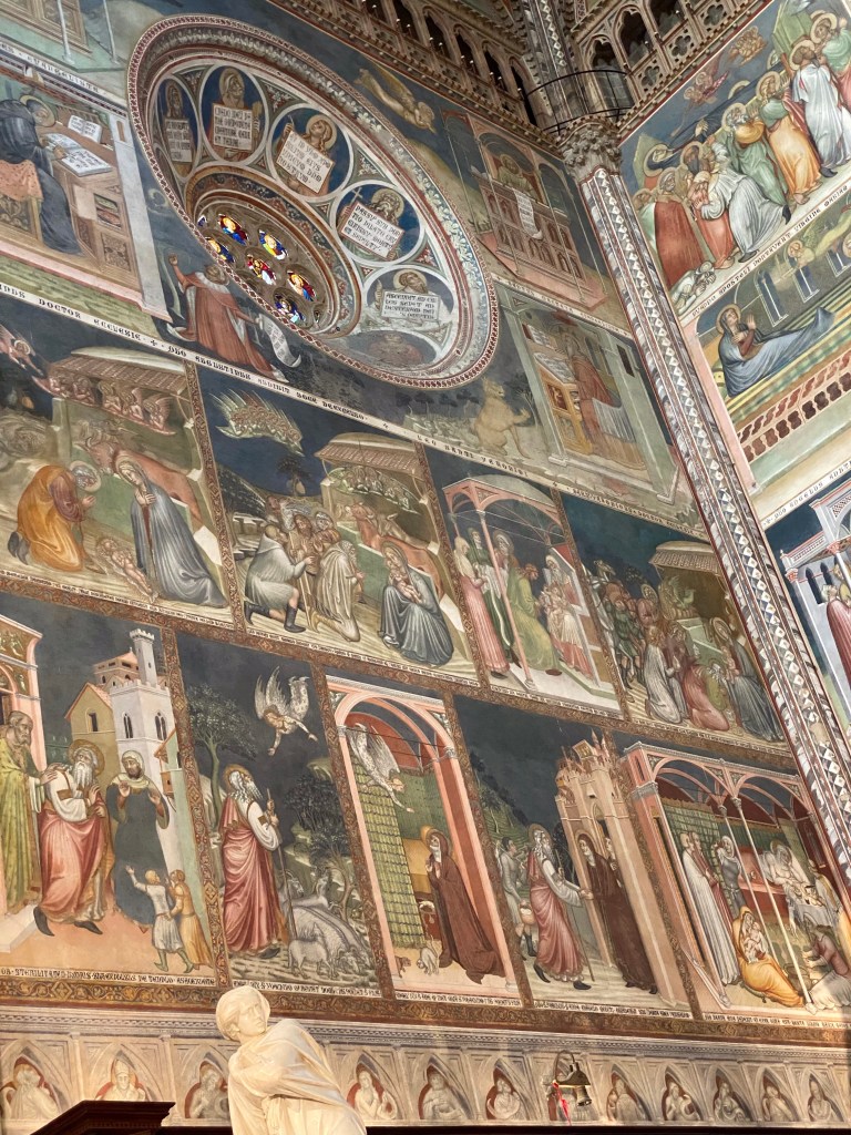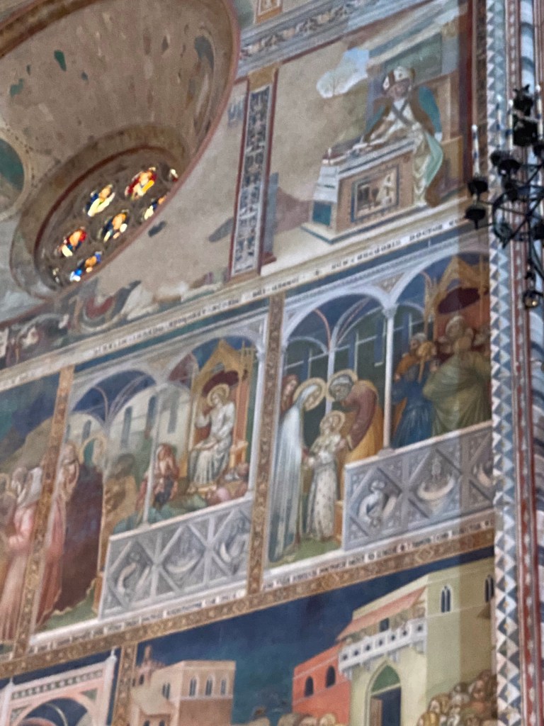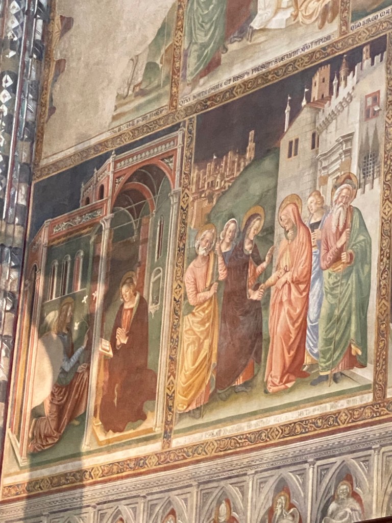 Fra Angelico and Benozzo Gozzoli began the decoration of the vault of the chapel in 1447. They painted only two sections: Christ in Judgment and Angels and Prophets as they were summoned in the same year to the Vatican by Pope Nicholas V to paint the Niccoline Chapel.