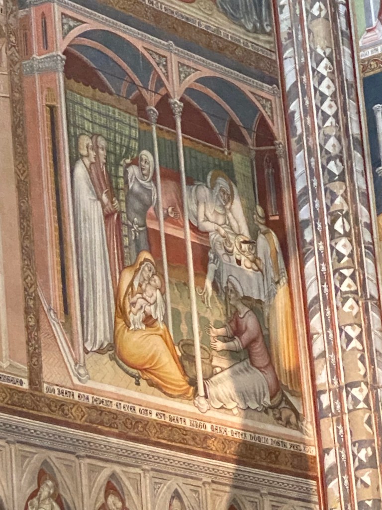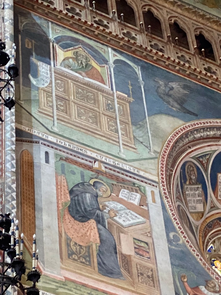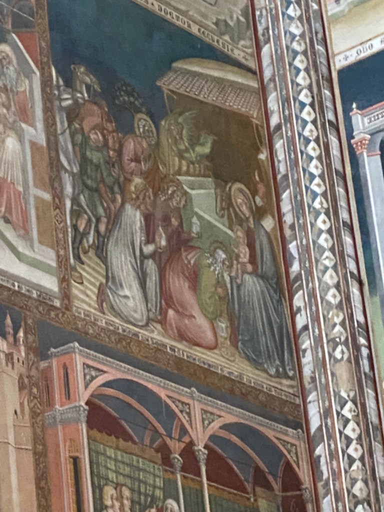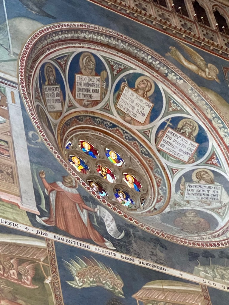 Fra Angelico and Benozzo Gozzoli began the decoration of the vault of the chapel in 1447. They painted only two sections: Christ in Judgment and Angels and Prophets as they were summoned in the same year to the Vatican by Pope Nicholas V to paint the Niccoline Chapel.