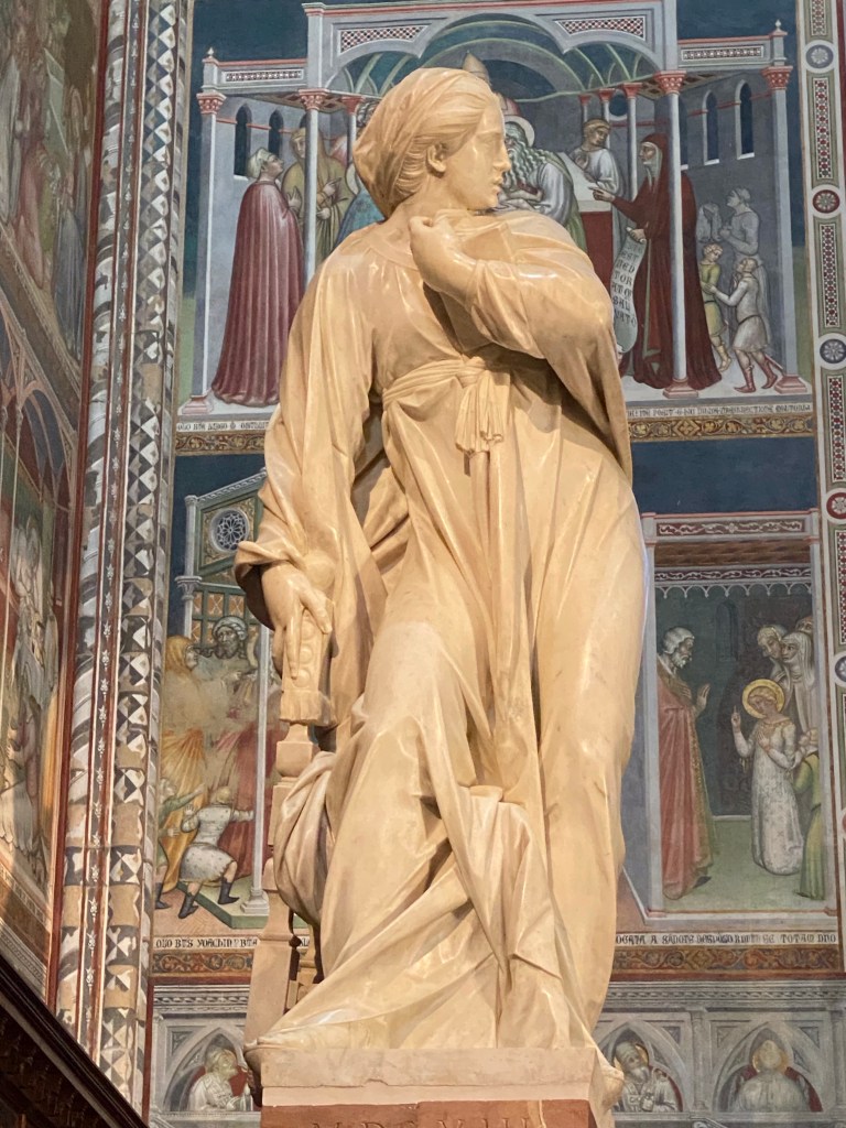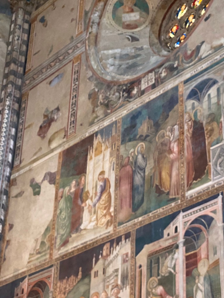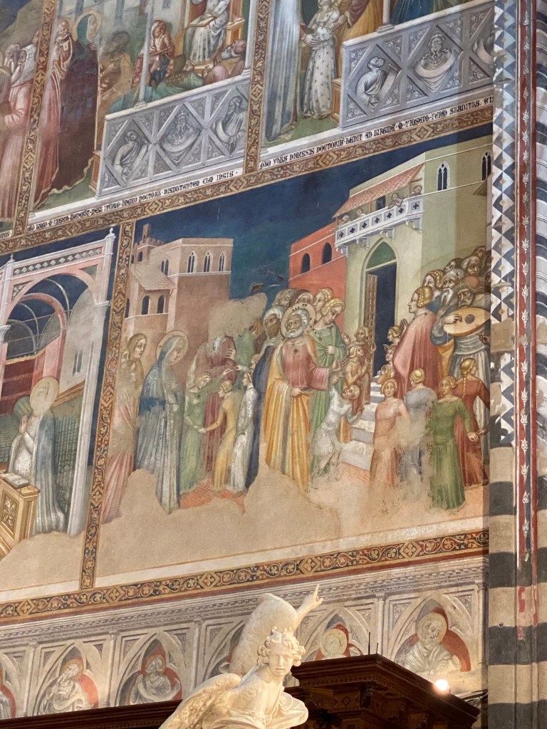 The aedicule-shaped tabernacle on the altar was designed in 1358 by Nicola da Siena and finished by Orcagna.