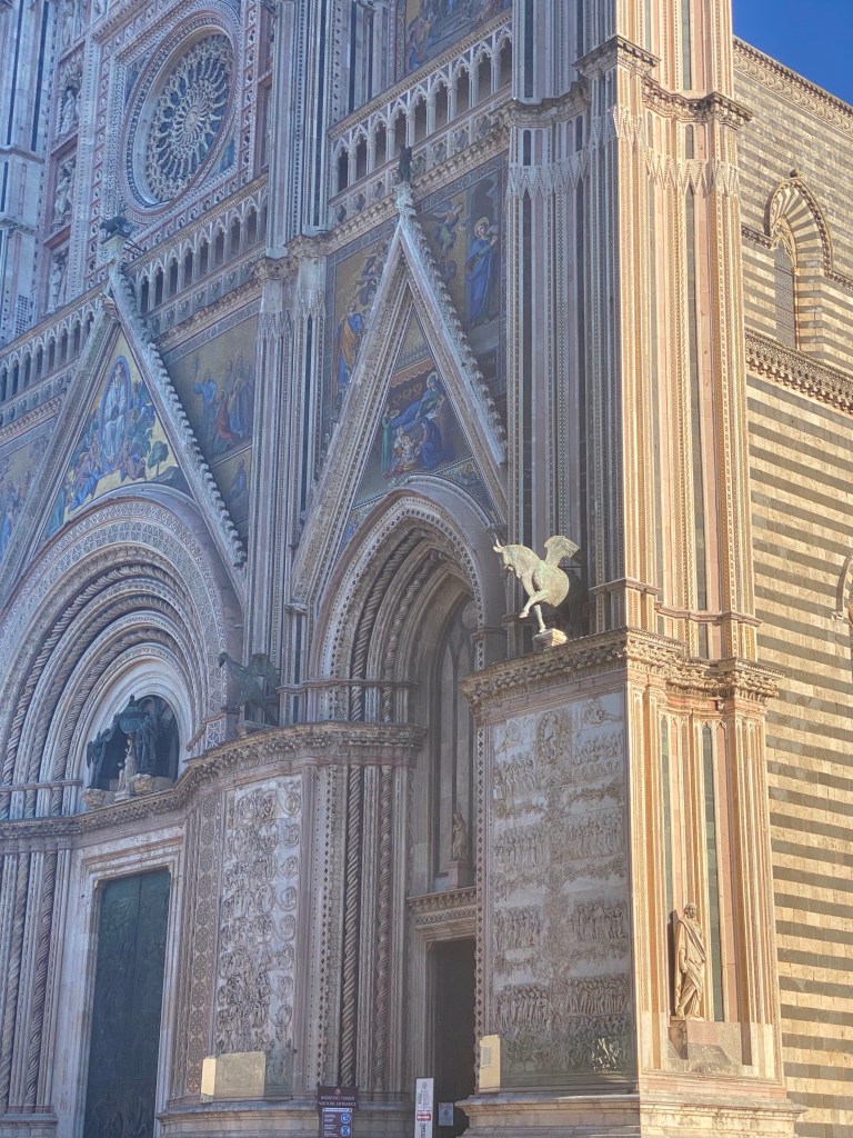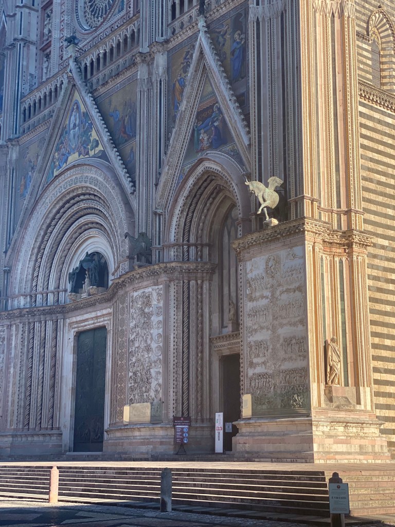 In the Chapel of the Madonna di San Brizio are some of the finest frescoes extant in Italy. They were created by Luca Signorelli in the 1490s.