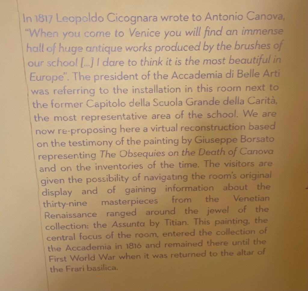 And, to close this post, it was interesting to learn that in this very building, in the 1824, Canova’s life and art were commemorated in an impressive ceremony.