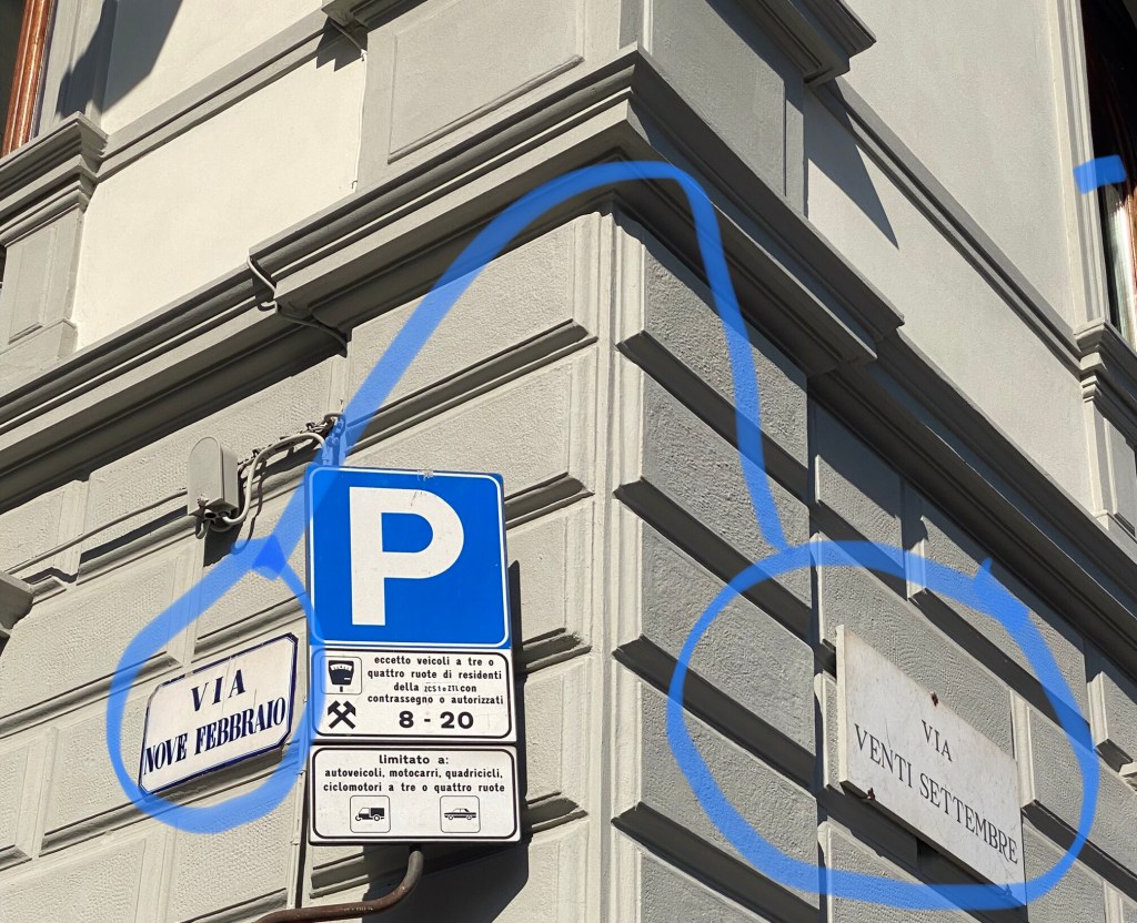 But here it’s common. I live on Via XX Settembre (September 20 street) and it intersects, as you can see below, with Via Nove Febbraio (9 February Street).