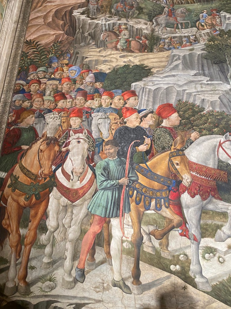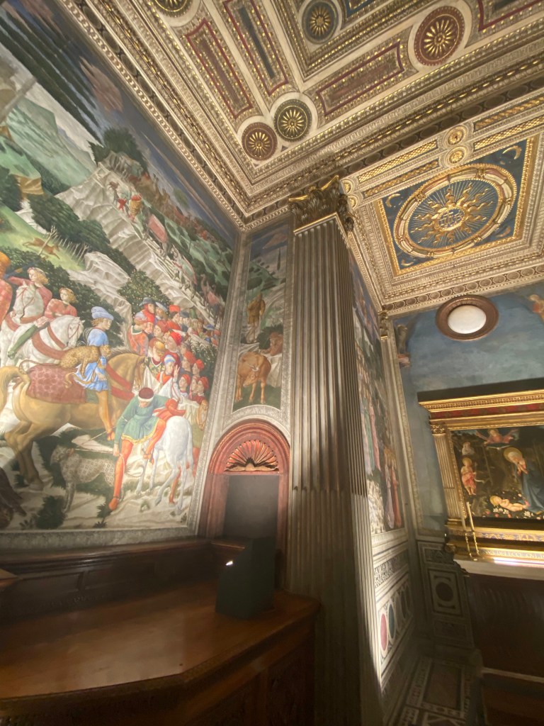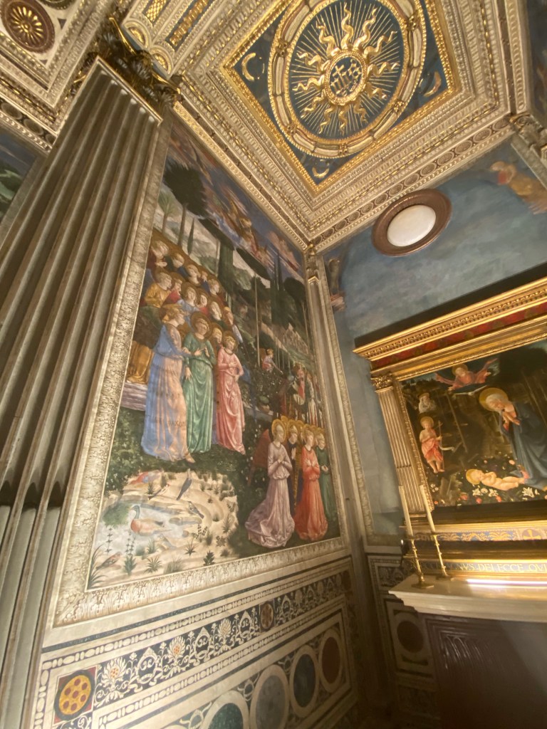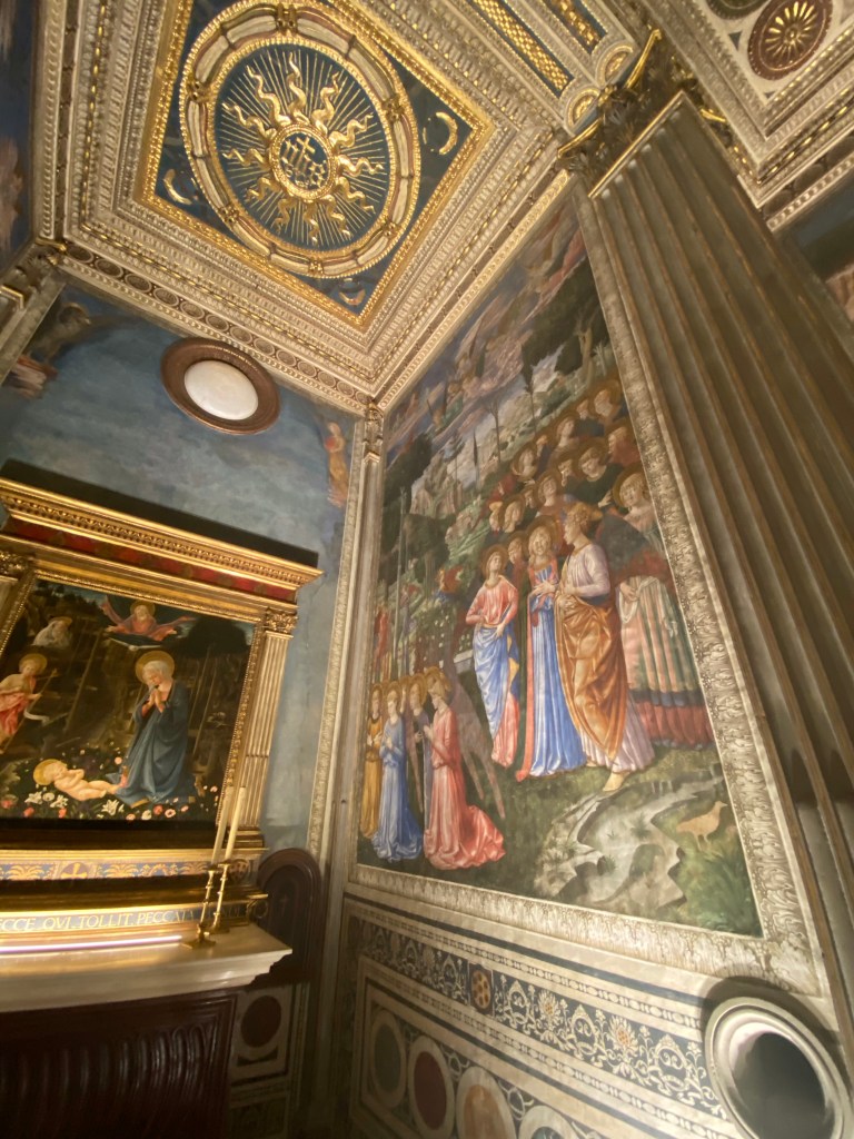 First, a little background. The chapel is in the home of the Renaissance family, the Medici, and to have permission to have a home chapel, dispensation from the Pope was necessary. Sought and gained. And, isn’t the world a better place for this dispensation having been given!