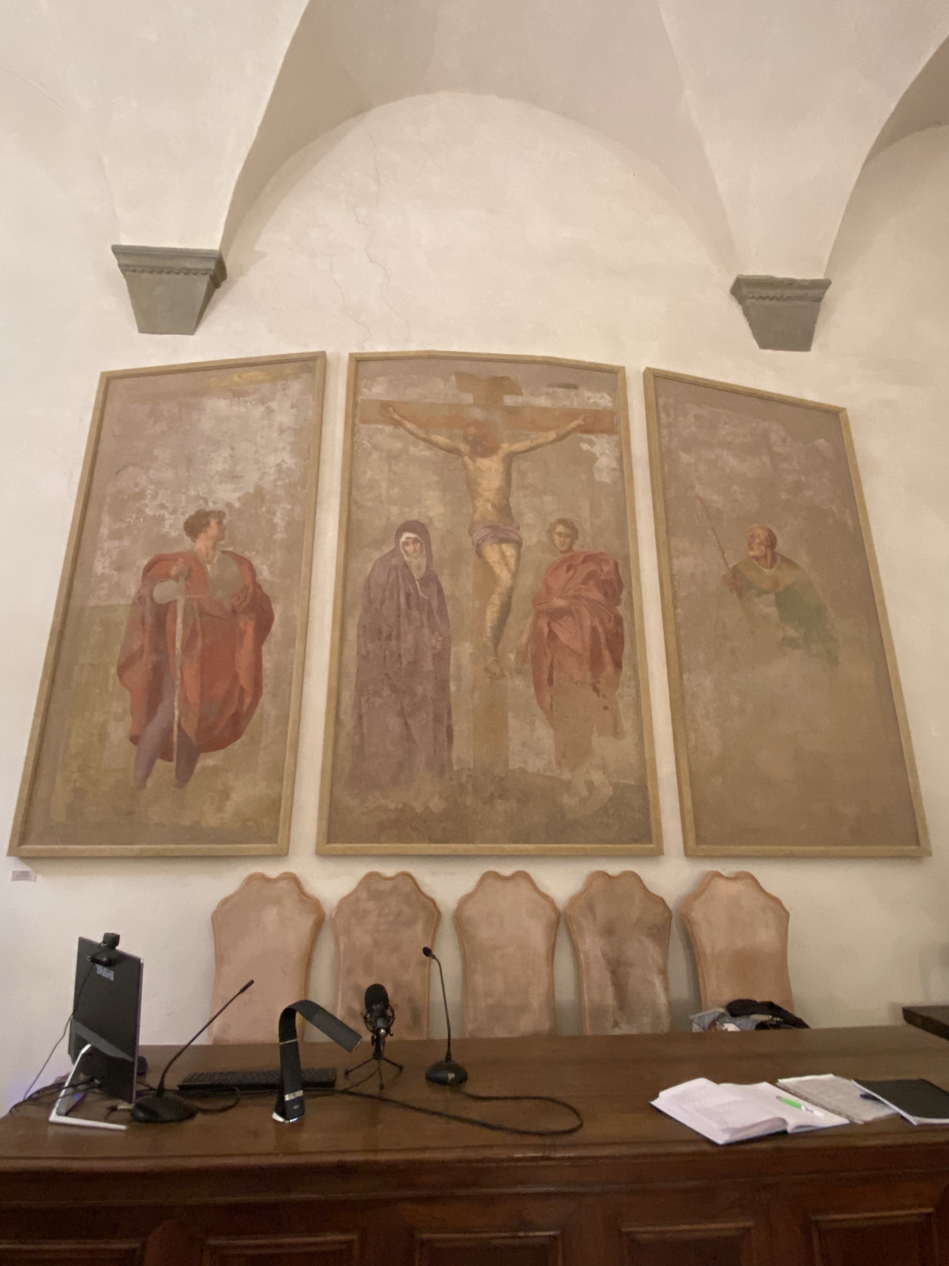 The academy’s main room also houses a few fine artworks; Pontormo’s Boldrone Shrine being key among them: