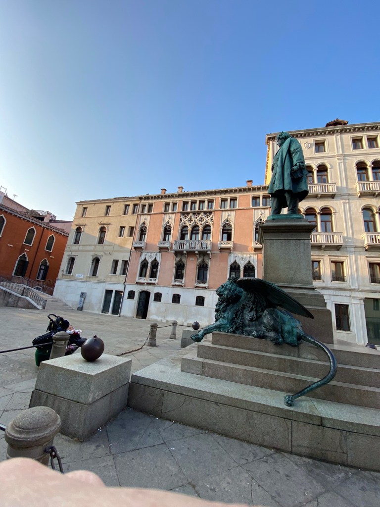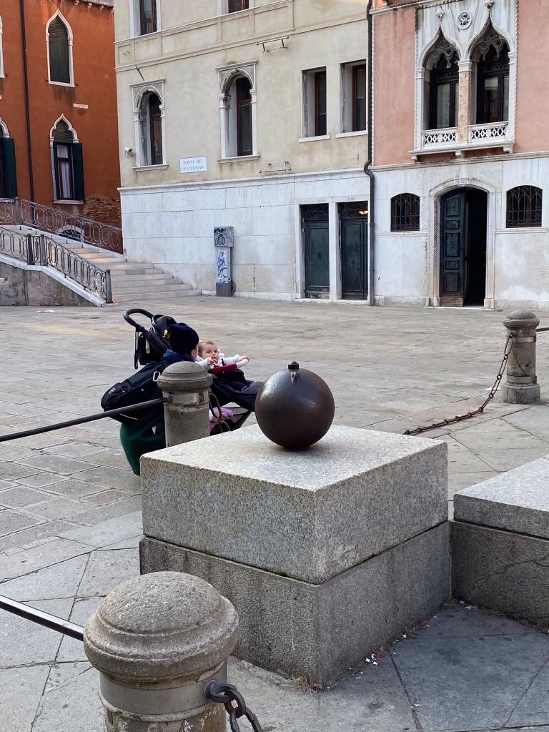 What else than a statue of an illustrious Venetian citizen?! Or, maybe just the lion? Who knows, but the baby is learning art appreciation, regardless! And the lion is winged.