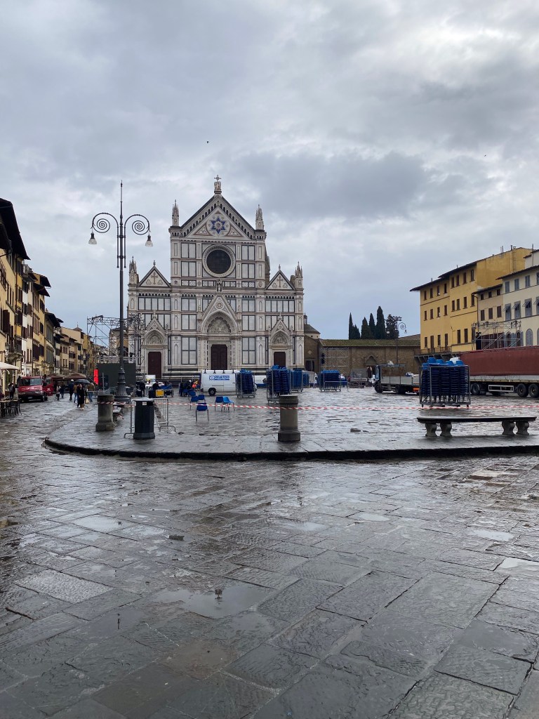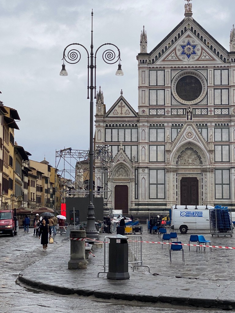 Florence has beautiful outdoor spaces and it uses them well. This historic piazza is used to host the annual Christmas markets, the calico storico games every spring, and, on the weekend the still photos below were taken, it was about to host a visit of Pope Francis.