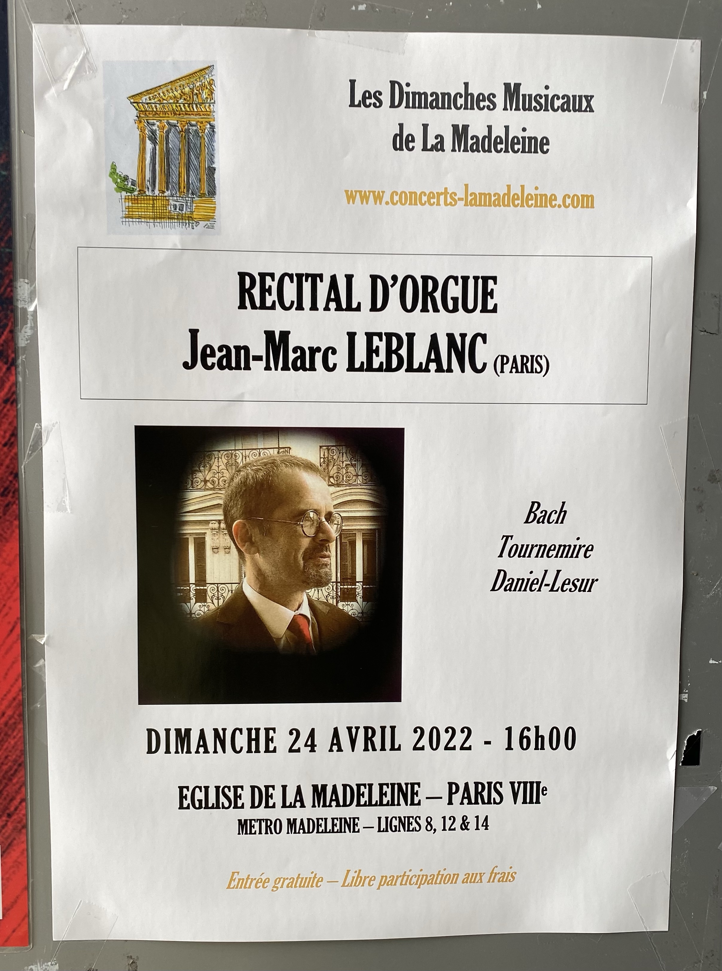 As a footnote to the great organ within La Madeleine, today the church hosts a series of important concerts. Below are some flyers for upcoming programs.
