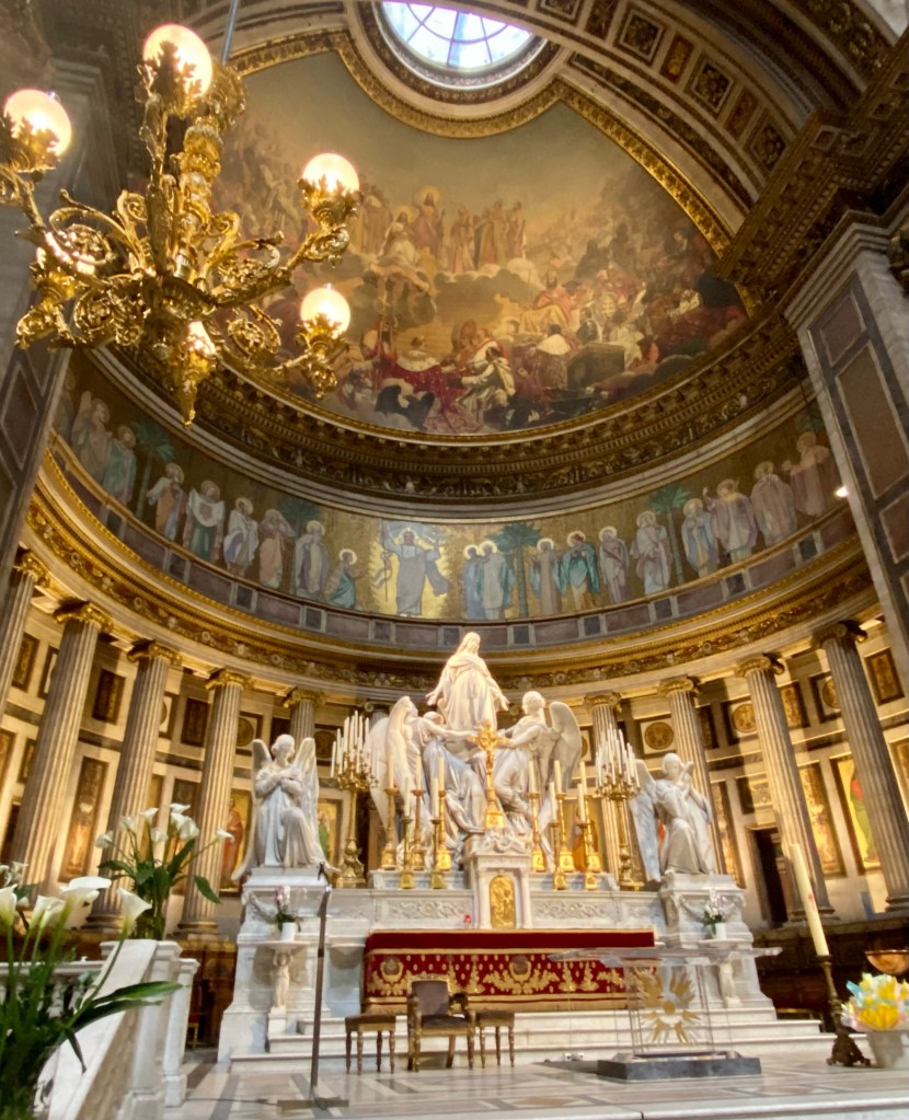 I’ve long wanted to visit this important Parisian church and I recently had my chance. As luck would have it, the exterior is undergoing some much-needed restoration, and the facade was completely hidden under full scaffolding. But at least it was still possible to see the other 3 sides of the building from the outside and to pay a visit to the vast interior. This church didn’t disappoint!