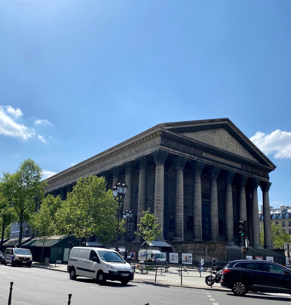 L’église de la Madeleine or, more formally, L’église Sainte-Marie-Madeleine occupies a commanding position in the 8th arrondissement. It is also known as just La Madeleine and it is an important Catholic church in the city.
