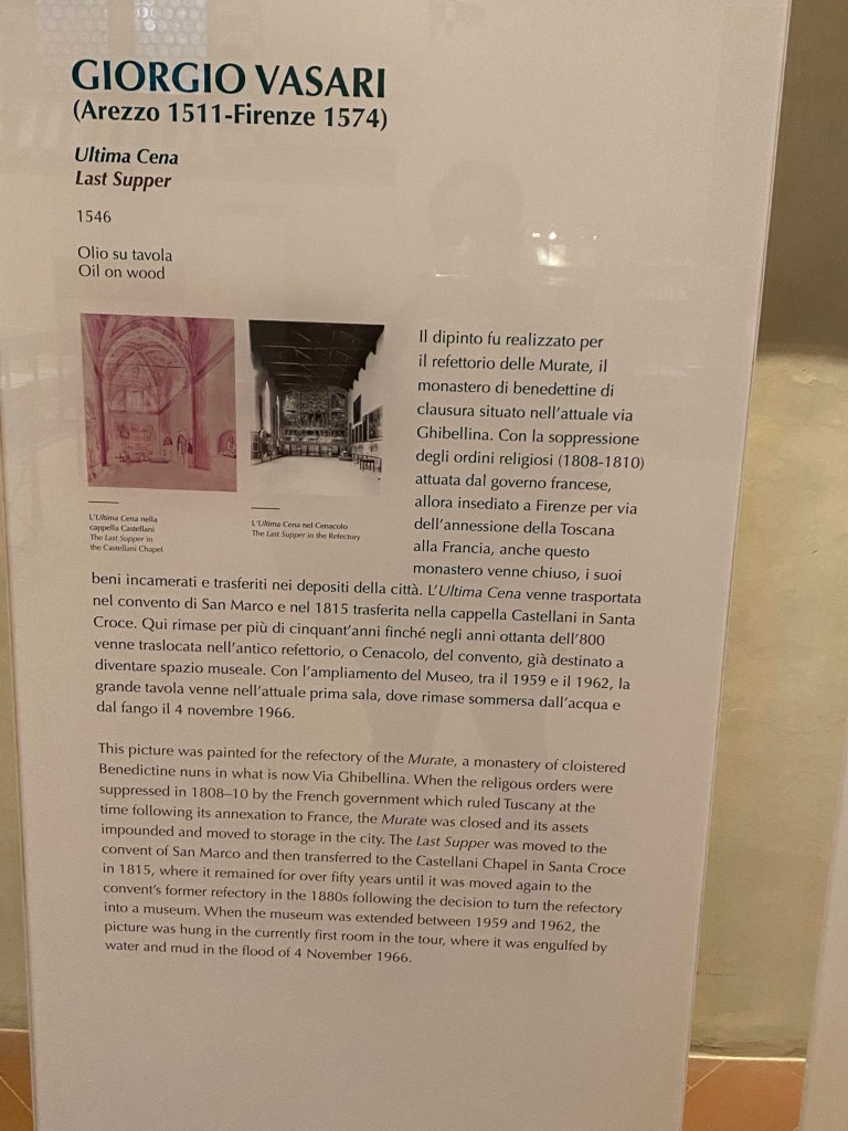 The Last Supper in the refectory, Santa Croce June 11, 2022February 27, 2022 / get back, laurettadimmick Share this: Share on X (Opens in new window) X Share on Facebook (Opens in new window) Facebook More Share on Reddit (Opens in new window) Reddit Share on Tumblr (Opens in new window) Tumblr Share on Pinterest (Opens in new window) Pinterest Print (Opens in new window) Print Share on LinkedIn (Opens in new window) LinkedIn Email a link to a friend (Opens in new window) Email Like Loading...