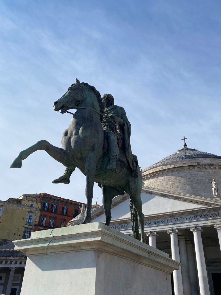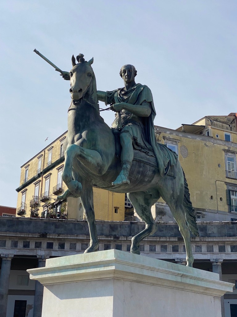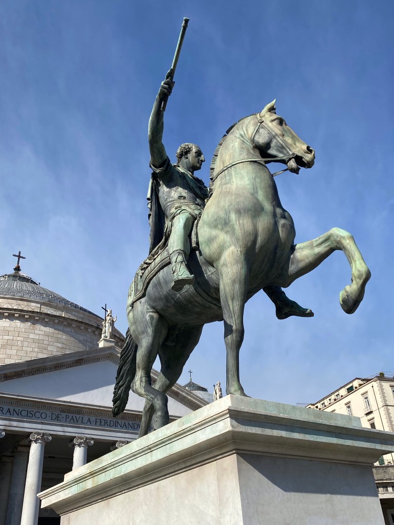 There are 2 equestrian monuments in the piazza, one of Charles III of Bourbon and his son Ferdinand I of the 2 Sicilies, both placed on marble bases (with no inscriptions!) facing the Royal Palace across the piazza.