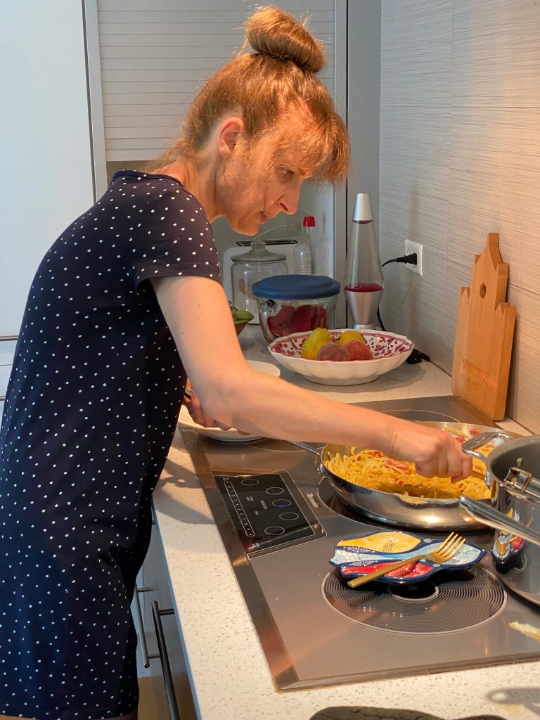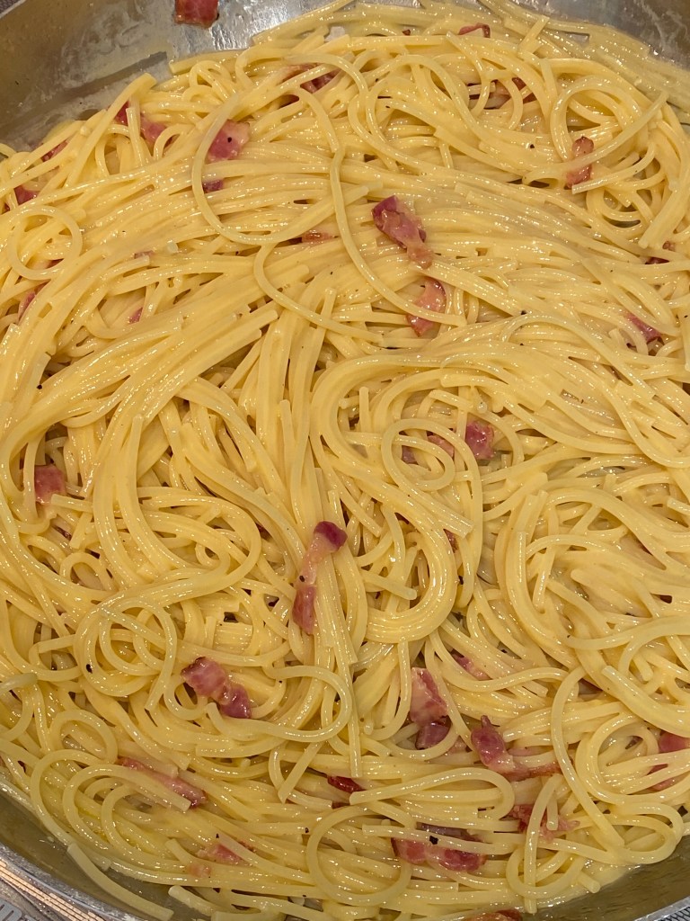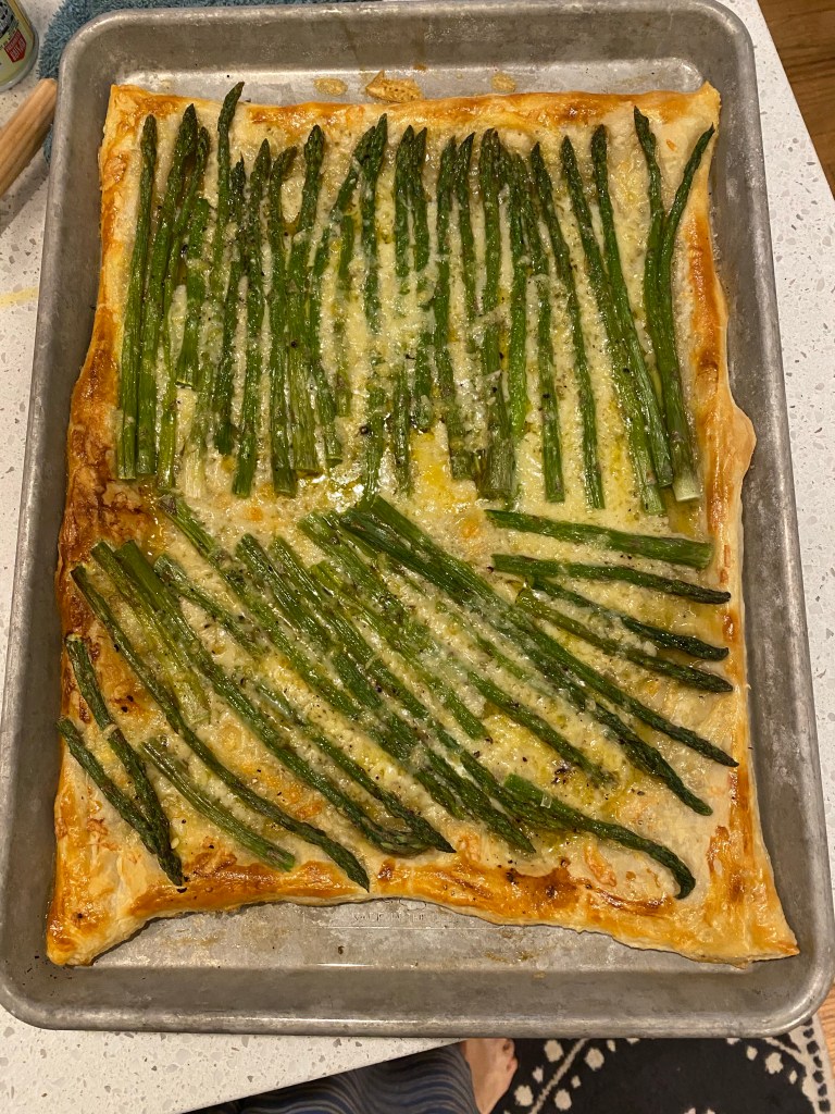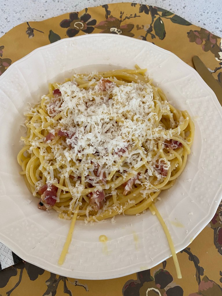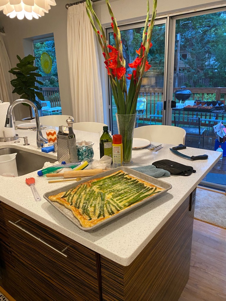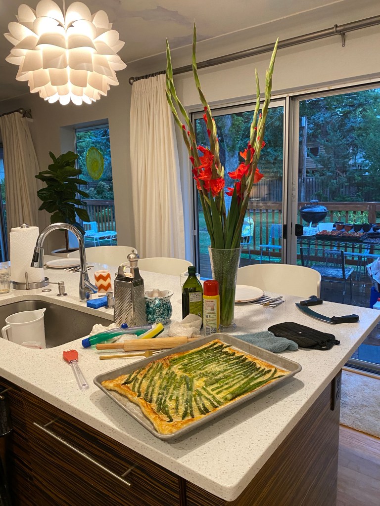 My houseguest from Florence made spaghetti carbonara and I baked a Gruyère and asparagus tart. Nothing like a few carbs to chase the blues away!
