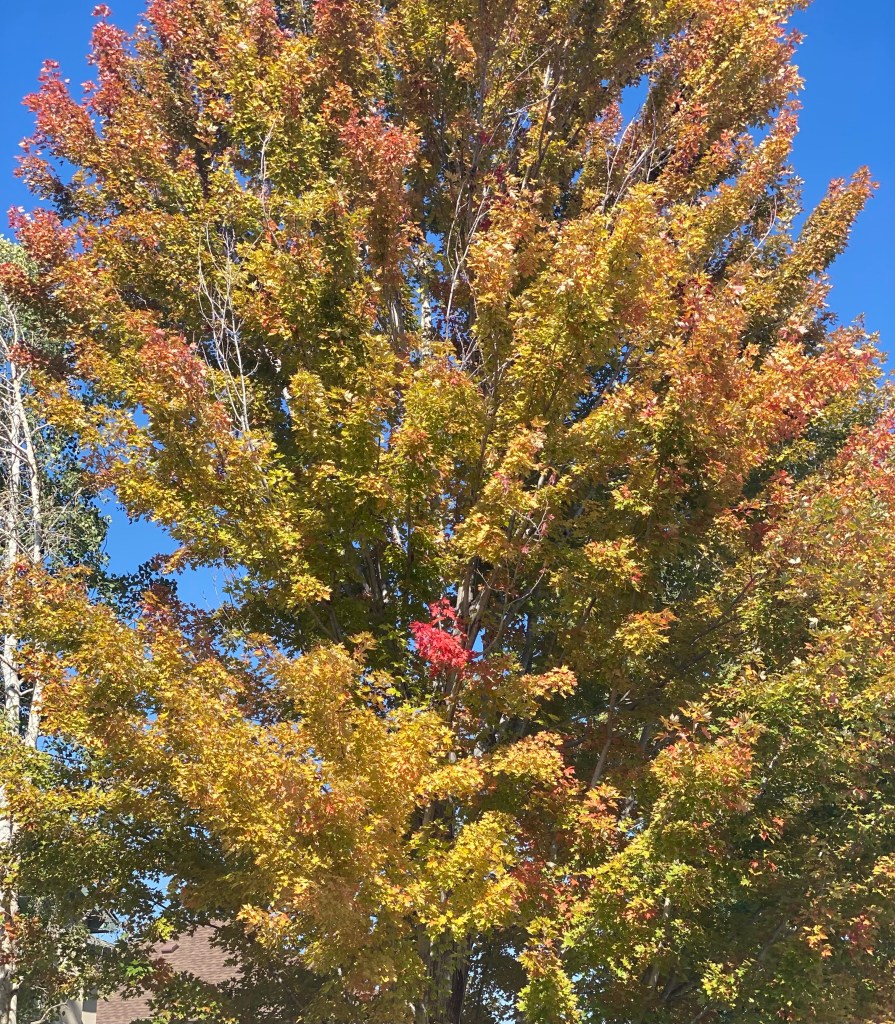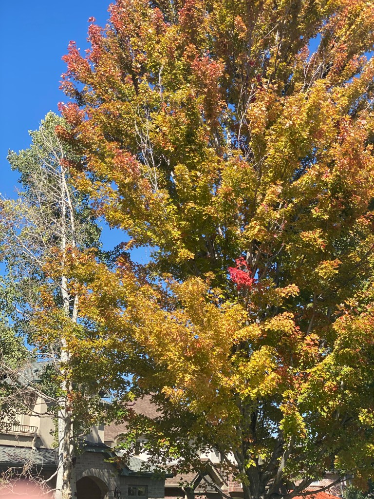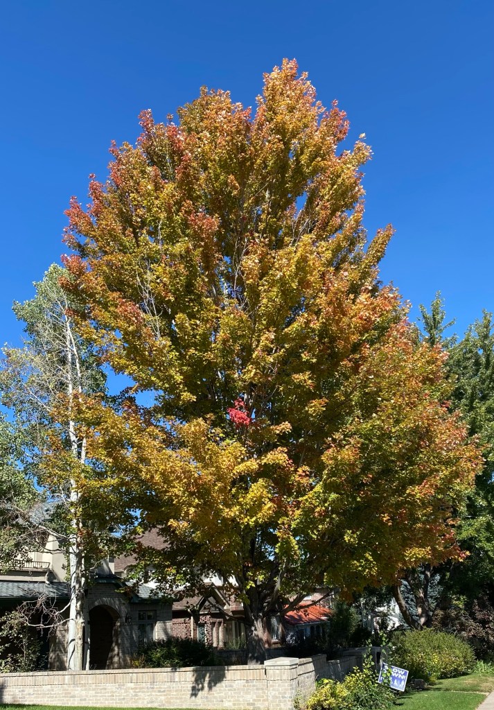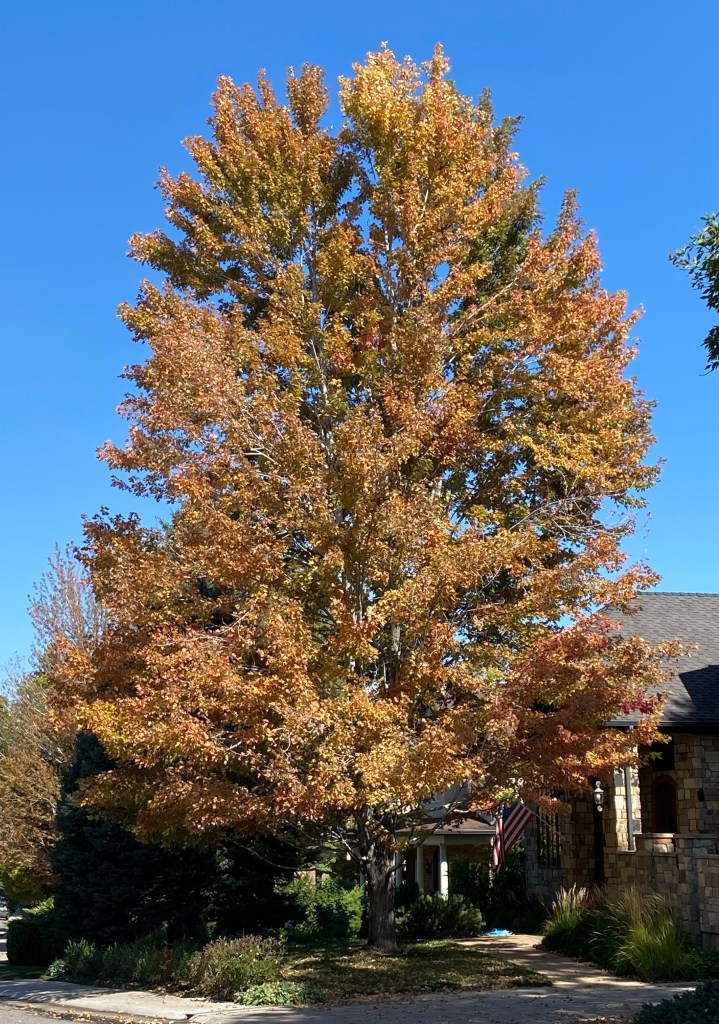 I wouldn’t think these 2 trees were very colorful. But Denver has a different horticulture, and for us, here, these are glorious deciduous trees with great color!