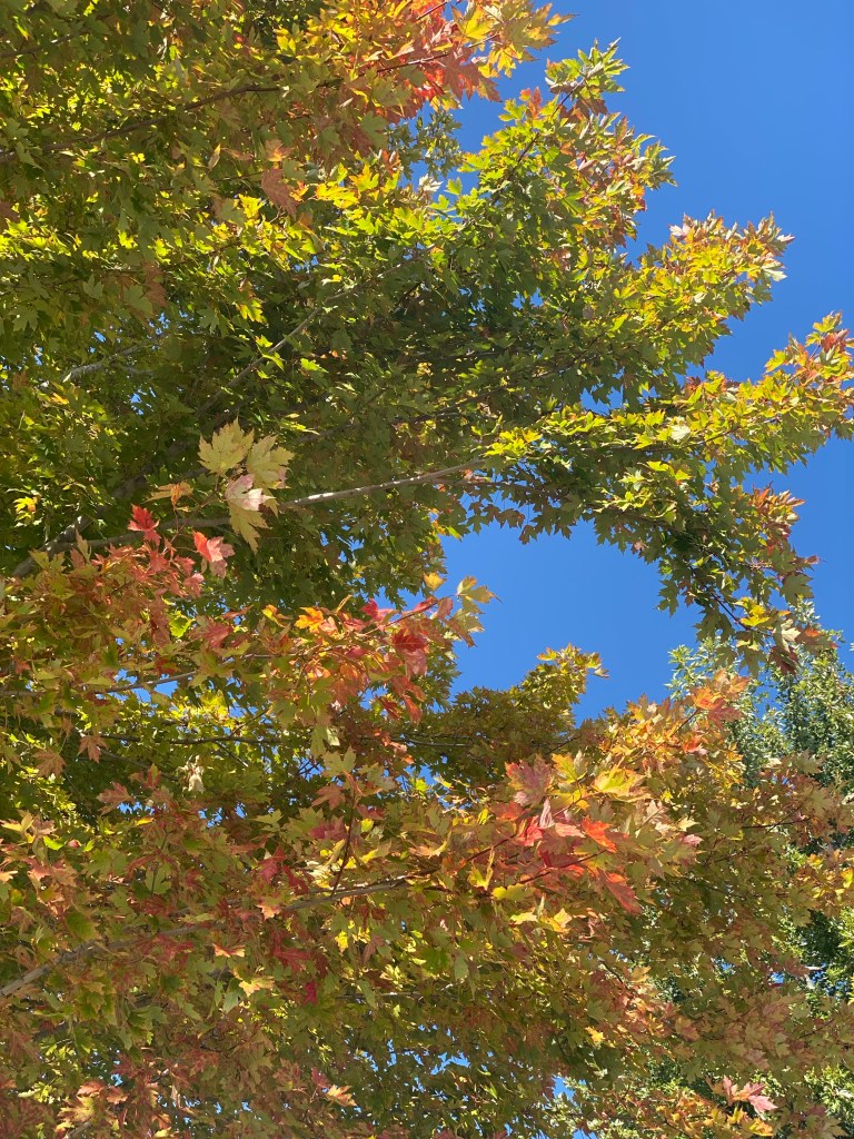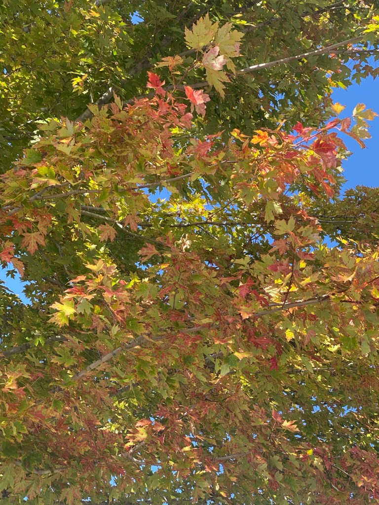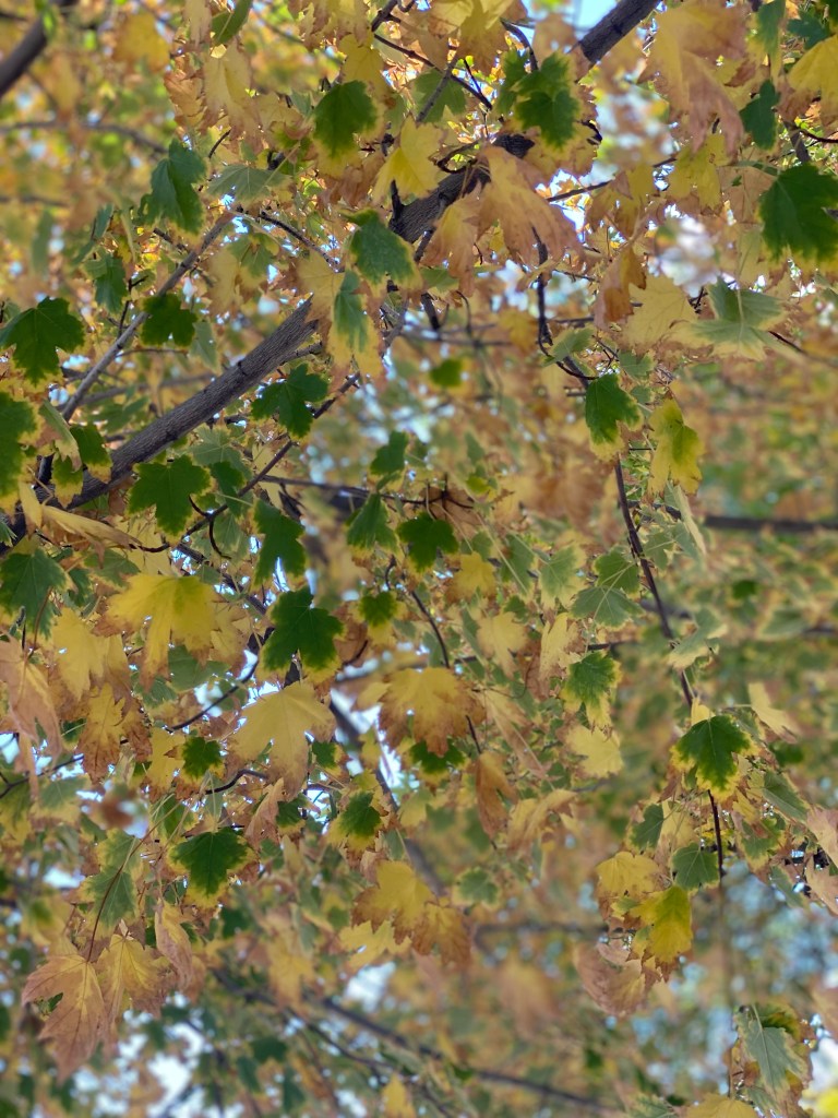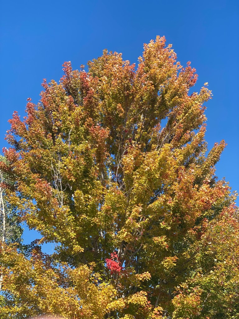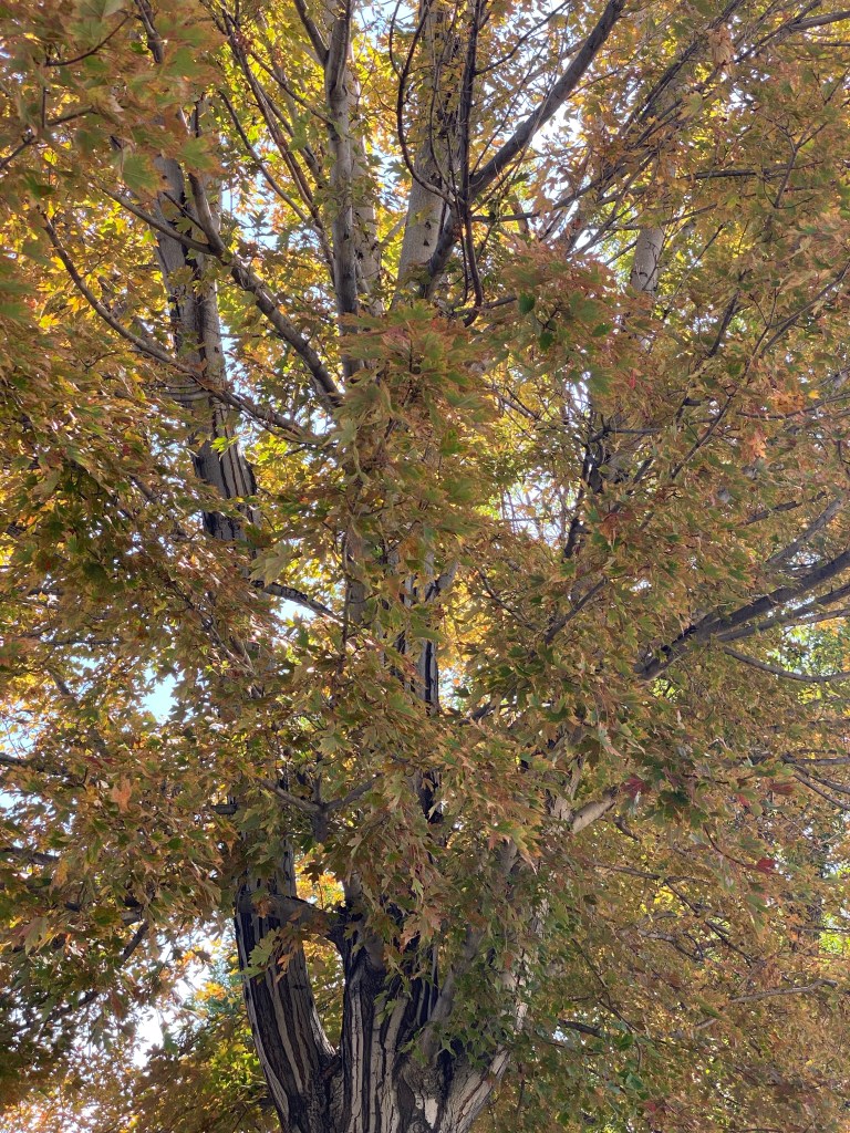 I wouldn’t think these 2 trees were very colorful. But Denver has a different horticulture, and for us, here, these are glorious deciduous trees with great color!