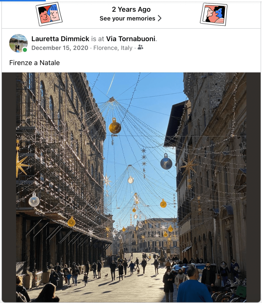Two years ago, Florence looked like this at Christmastime. My friends in Florence tell me that this year the lights are on for a shorter time each day due to the energy crisis created by Putin’s war.