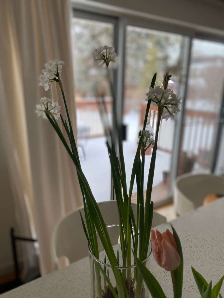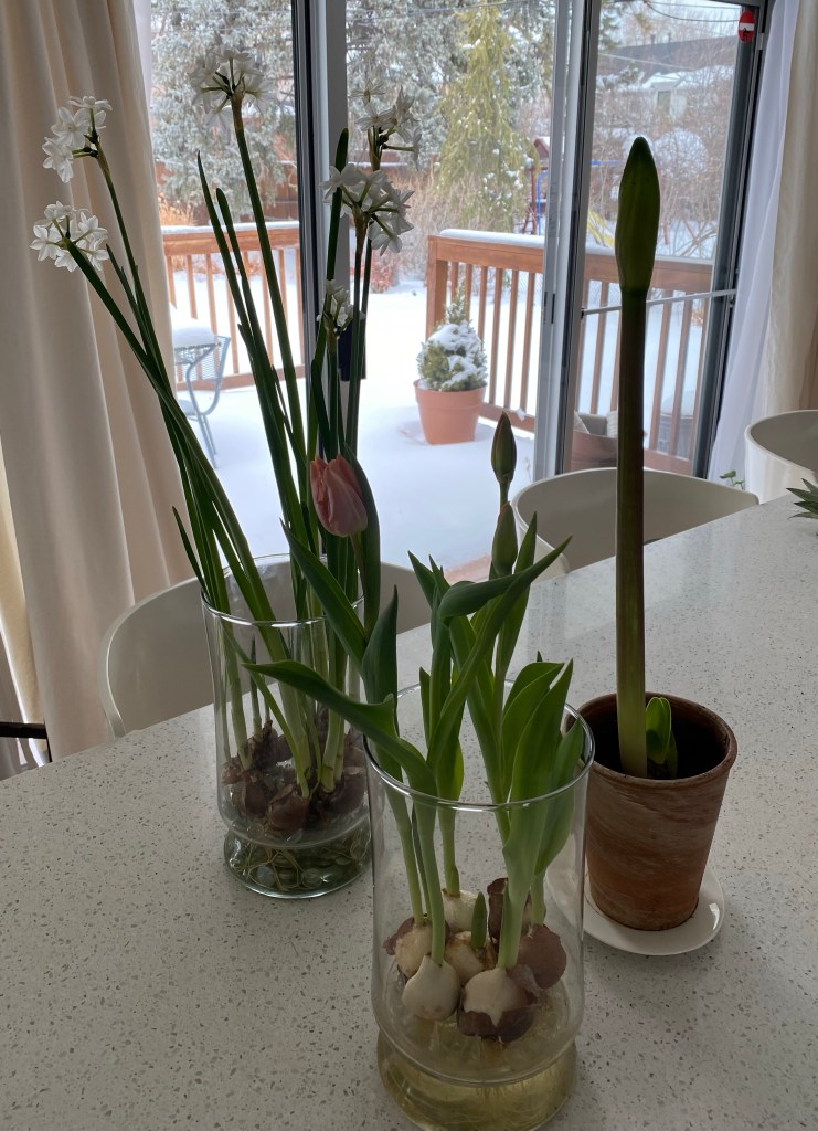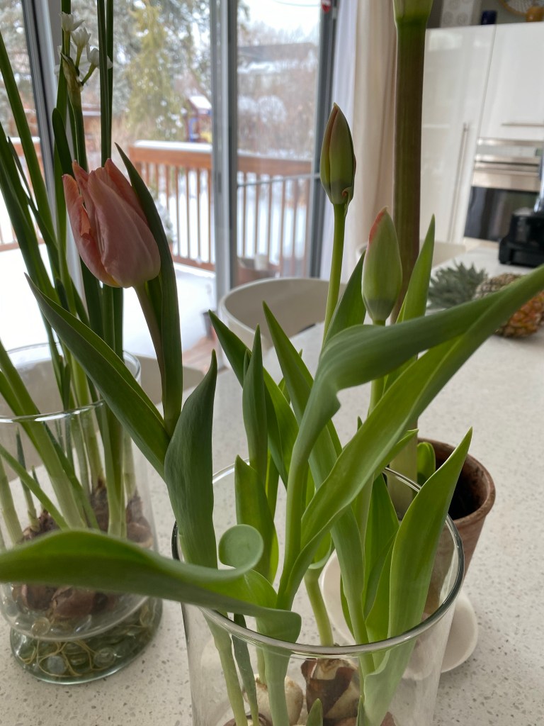 I’ve got spring bulbs blooming in my house to brighten up this dreary month.