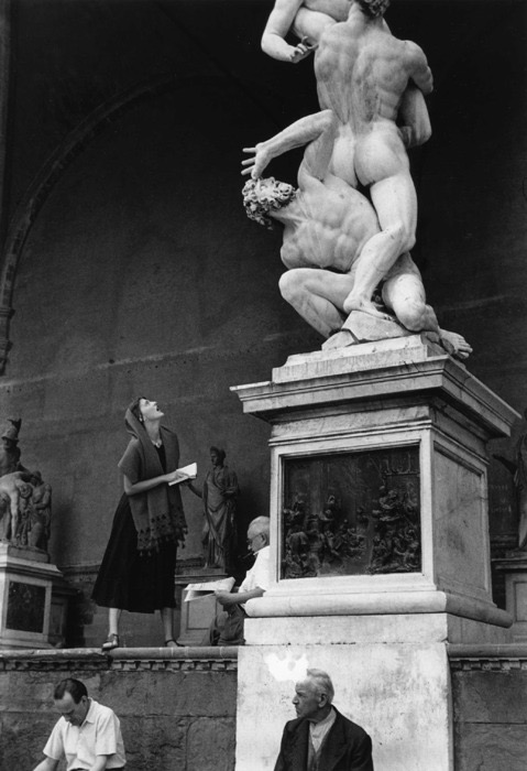 In 1952, photographer Ruth Orkin was on her way back to NYC from a photo shoot in Israel. She stopped in Europe and while in Florence, Italy, she met another young American, Jinx, and together they took some random shots around the city. The one above is without question the most famous of the series.