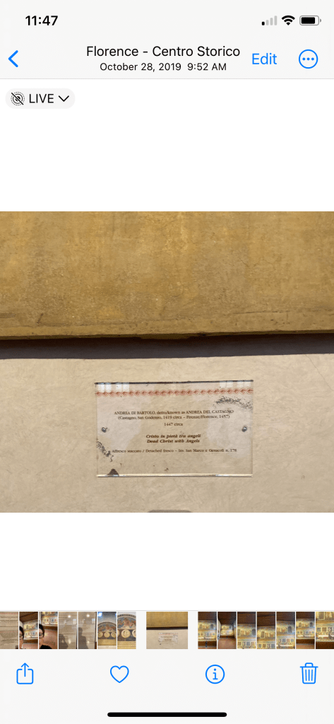 Museo di Cenacolo di Sant’Apollonia, Florence; Part 4 February 20, 2023February 9, 2023 / get back, laurettadimmick This is the final post on this small but excellent museum in the center of Florence. Share this: Click to share on X (Opens in new window) X Click to share on Facebook (Opens in new window) Facebook More Click to share on Reddit (Opens in new window) Reddit Click to share on Tumblr (Opens in new window) Tumblr Click to share on Pocket (Opens in new window) Pocket Click to share on Pinterest (Opens in new window) Pinterest Click to print (Opens in new window) Print Click to share on LinkedIn (Opens in new window) LinkedIn Click to email a link to a friend (Opens in new window) Email Like Loading...