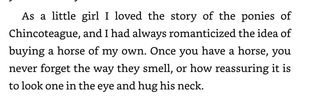 I’ve been reading her memoir, Broken Horses, and when I read this passage, I completely related: