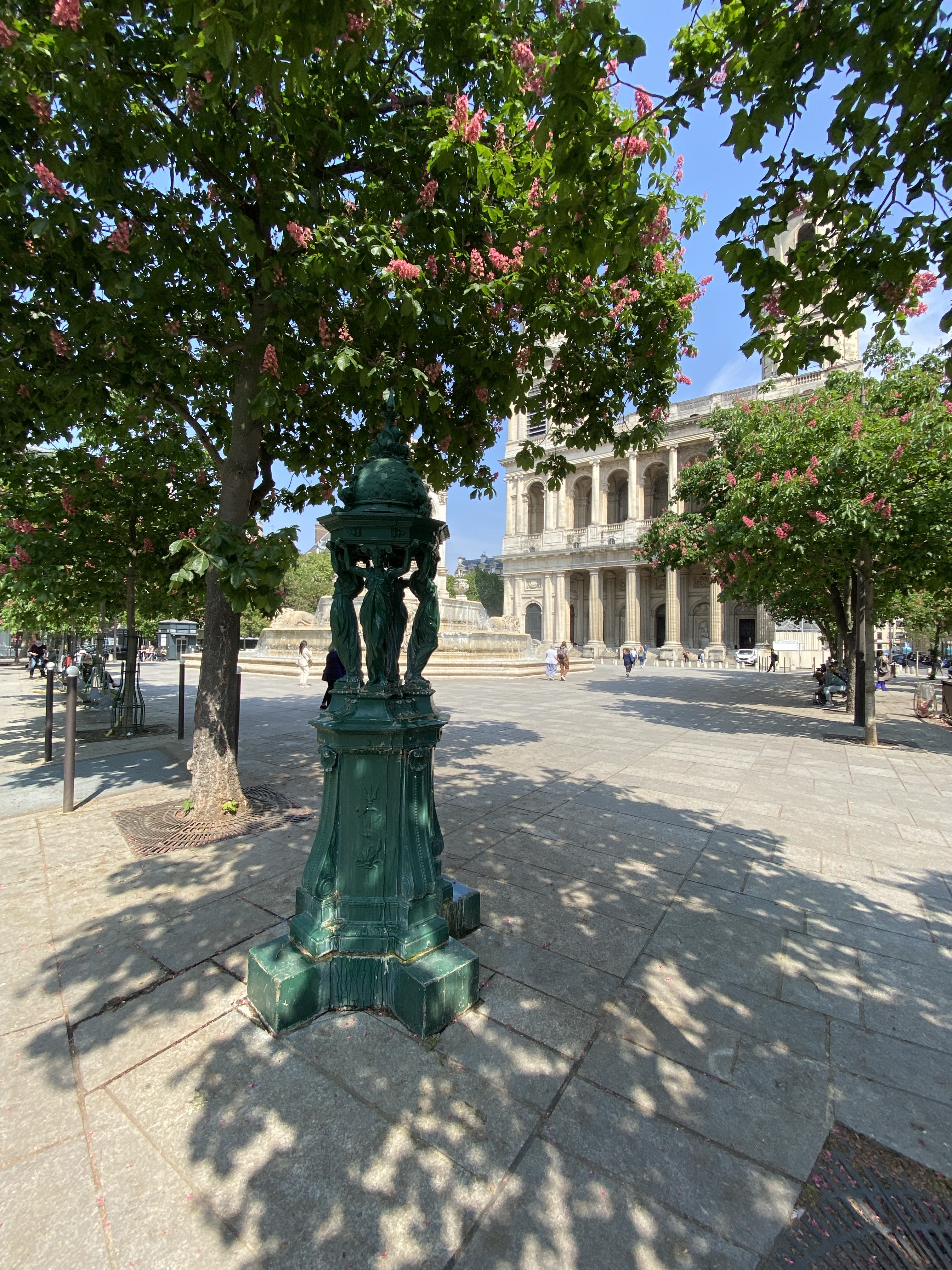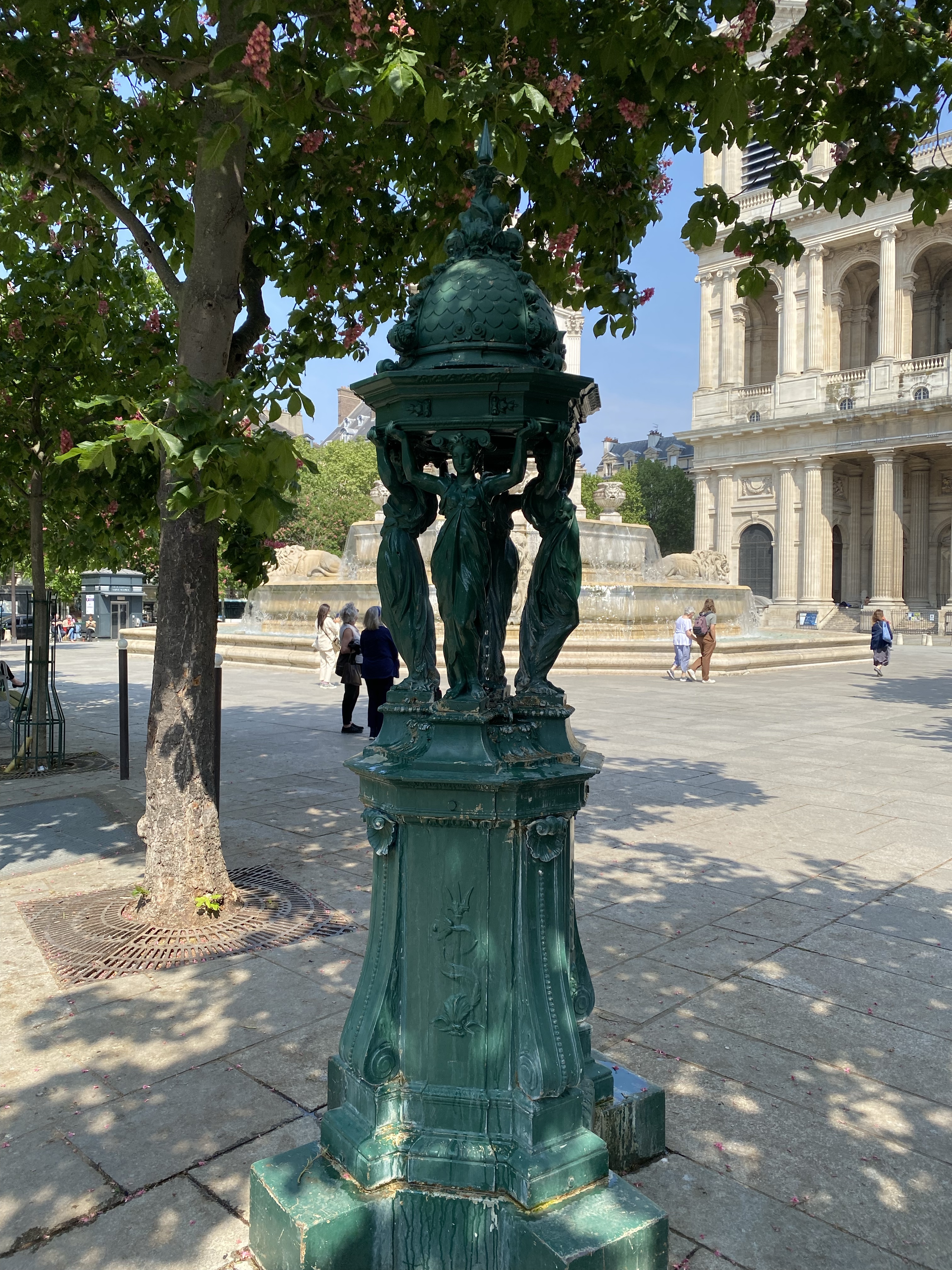 Richard Wallace, an Englishman who lived most of his life in Paris, donated funds in the second half of the nineteenth century to bring free, clean drinking water to Parisians. Perhaps his rationale was simply a strong desire to wipe out public and private drunkenness among the poor, something he witnessed too often during the Paris siege of the Franco-Prussian War from 1870-71 and the Commune era that immediately followed. Through his focused efforts to combine practical design with extraordinary beauty and allegorical meaning, he created works of art that continuously serve the public by delivering clean drinking water to the population. He also gave Paris one of its most lasting and beloved iconic symbols.