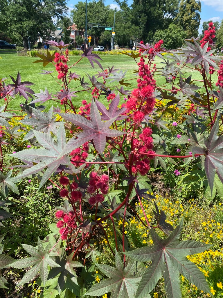 I was unfamiliar with this plant, so I looked it up on my trusty phone app, PlantNet. It turns out this is the castor oil plant. Who knew?!