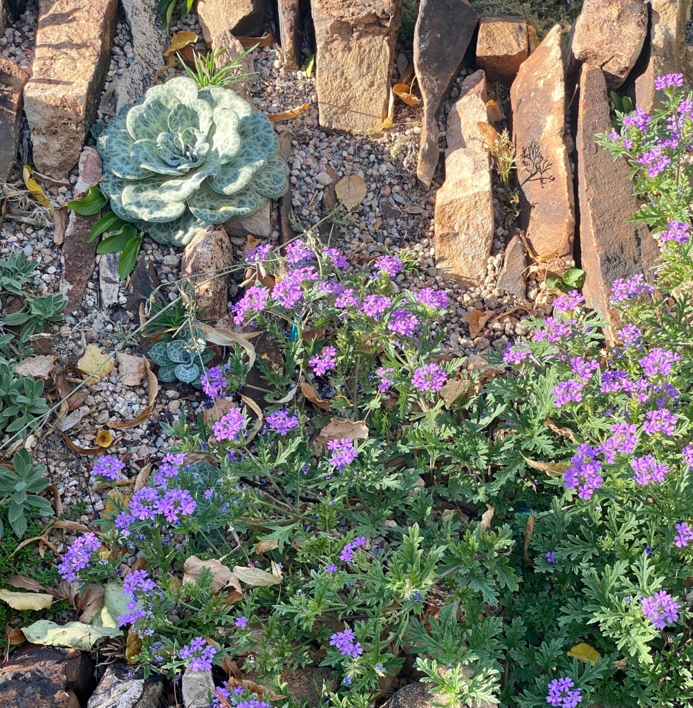 Last vestiges of summer flowers. I can’t imagine the water it took to keep these impatiens looking so robust in our dry climate.
