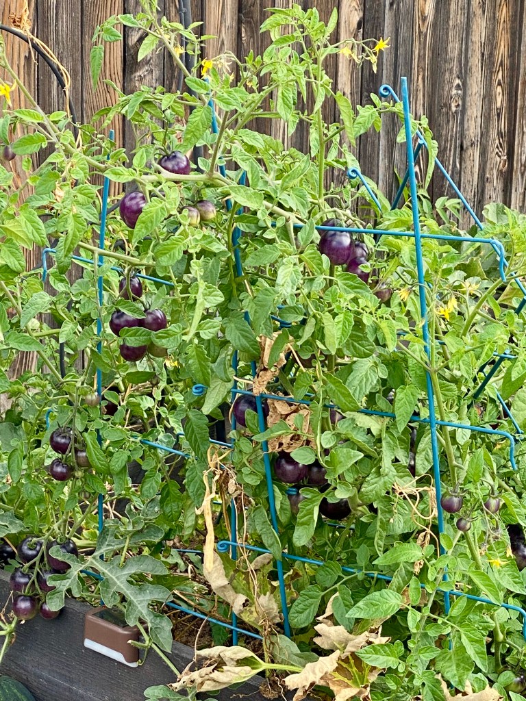 Both red and black cherry tomatoes grown in the neighborhood. I have tomato envy.