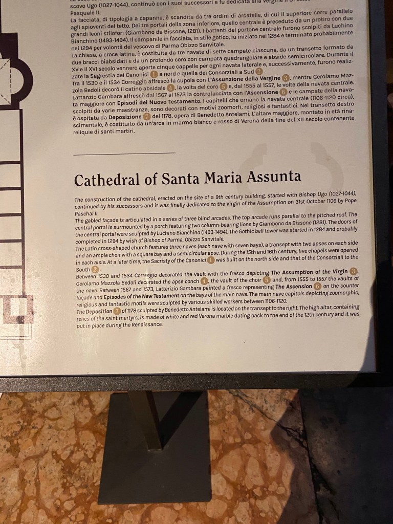 In a previous post, I described the pleasure I derived from visiting Parma one recent November. I was astounded by the cathedral and especially the medieval sculpture.