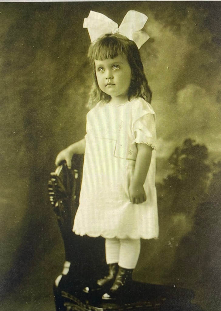 The picture below was taken when she was, what? 3 years old, I’d guess. I love it. Her eyes were the most luminous shade of light blue and even this black and white photo captures their incandescence. I’ve never seen that color of eye in anyone besides my lovely mother.