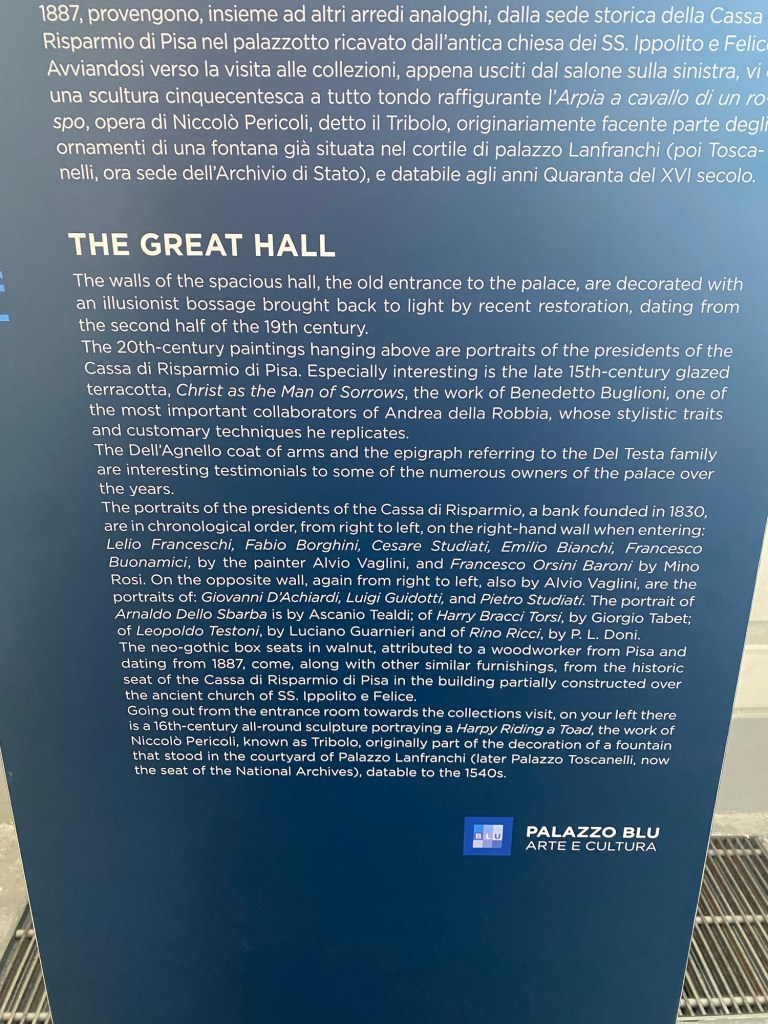 Today I had the chance to visit the Palazzo Blu in Pisa, a palace I’ve wanted to visit for more than 2 years. Anything you want to know about it can be found here: https://palazzoblu.it/?lang=en