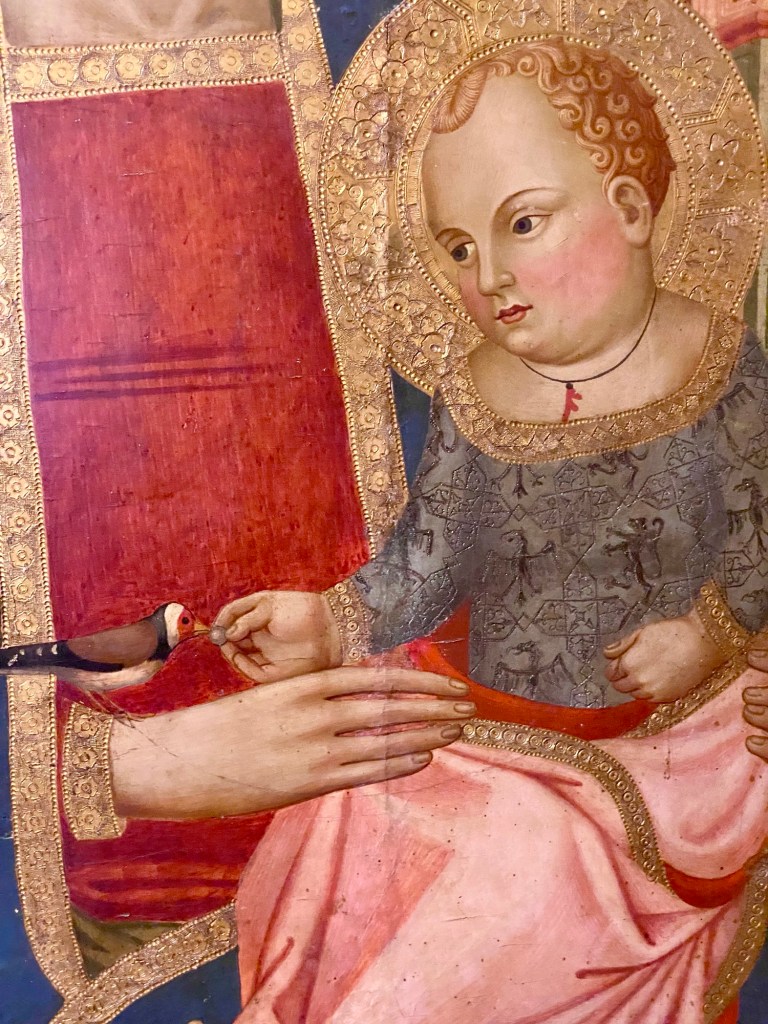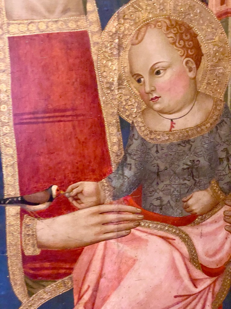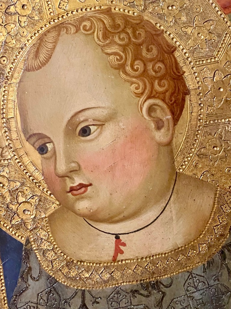 I love that the Christ child wears a piece of coral tied around his neck. Babies (especially in the Naples area today) would often be protected from evil by this magical piece of mineral.