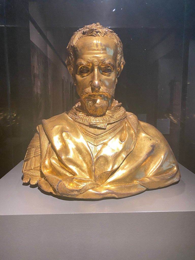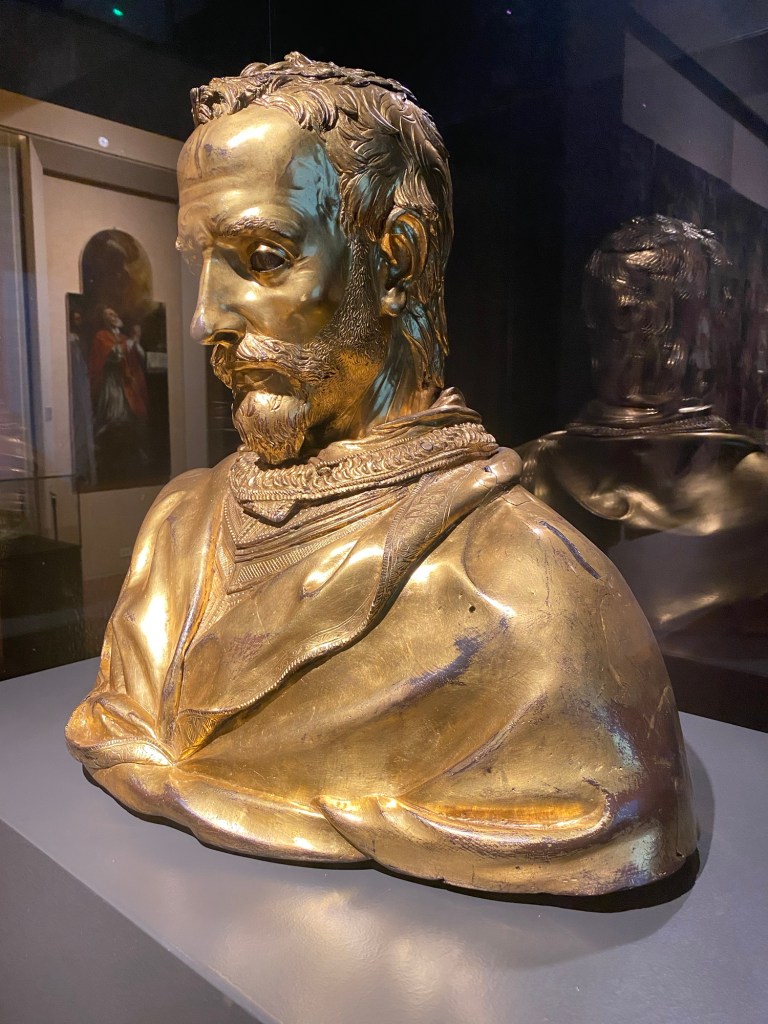 The San Rossore Relliquary bust is a gilded, bronze sculpture from 1424-27 by Donatello. The monks of Ognissanti in Florence acquired the skull of Saint Luxorius (popularly known as San Rossore) in 1422 and 2 years later they commissioned Donatello to create the reliquary to house it.