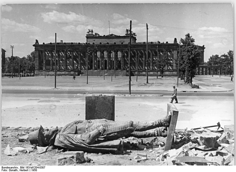 During the Nazi era, the Altes Museum was used as the backdrop for propaganda, both in the museum itself and upon the parade grounds of the redesigned Lustgarten. Close to the end of Second World War, the building was badly damaged when a tank truck exploded in front of it, and the frescoes designed by Schinkel and Peter Cornelius, which adorned the vestibule and the back wall of the portico, were largely lost.