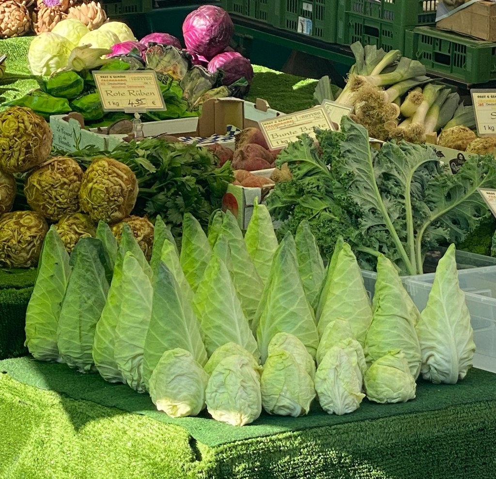 At the famous Der Münchner Viktualienmarkt, I was entertained to see cabbage in an artistic manner.