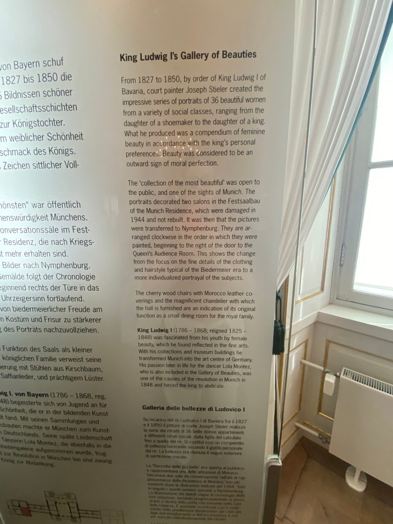 Now, the next gallery is interesting to me, because I’ve never seen anything quite like it. Apparently King Ludwig I admired beautiful women. Wow, that’s so unusual. Ha ha.