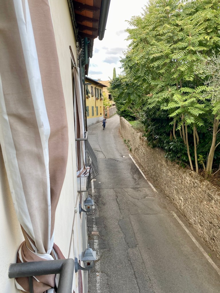I’m staying in a sweet Airbnb apartment just outside Florence; I have a lovely olive tree outside my kitchen window and the view of a grove of olives outside my bedroom window. I’m awaiting my own apartment which should be available next week, finalmente!