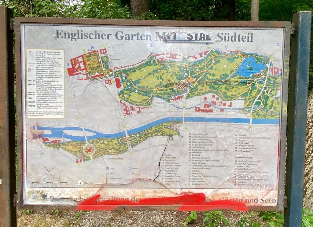 One of the most widely known places in Munich is the large and lovely Englischer Garten. Laid out by an English horticulturalist in the natural style as opposed to the formal French style, it is a nice place to wander through on a hot day, and now that fall is in the air, I can confirm that the autumn is fine there as well.