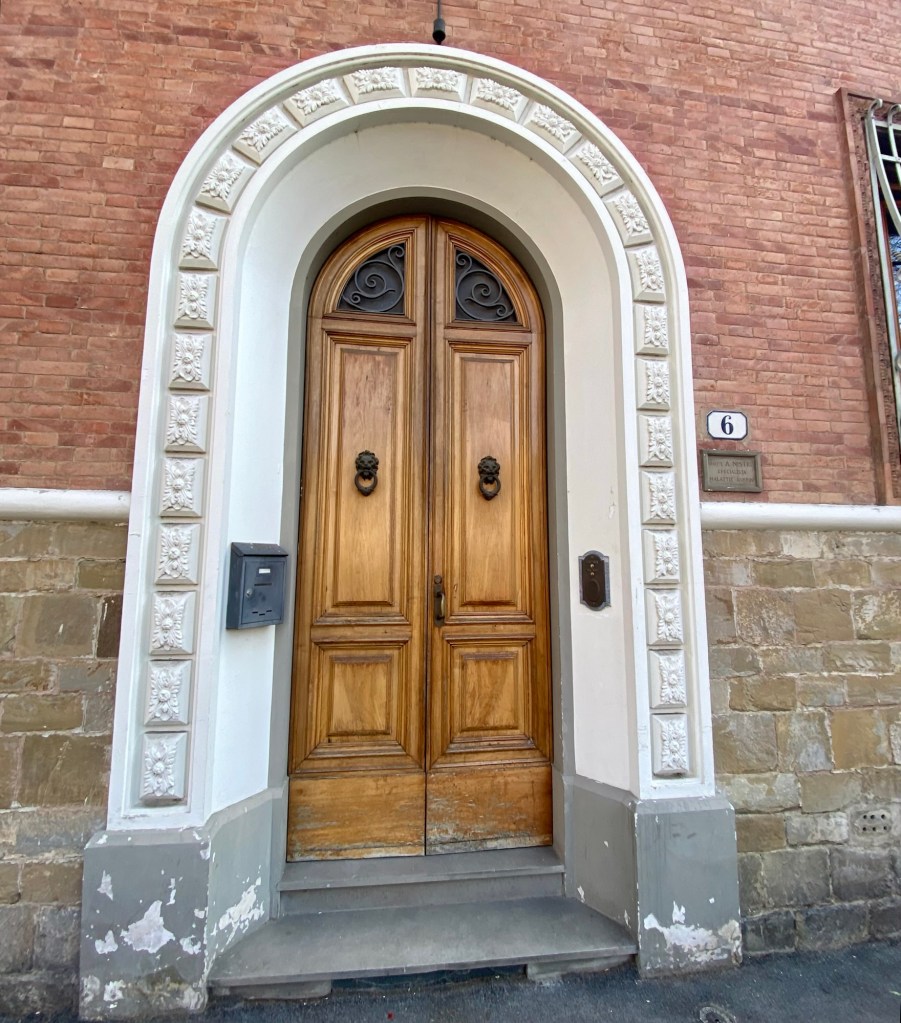 Walking through a middle class, rather modern (1930s-40s I would guess) neighborhood in the outer reaches of Florence, I spotted this somewhat grand entryway. It was remarkable for its elaborate stone trimming and I stopped to have a look.