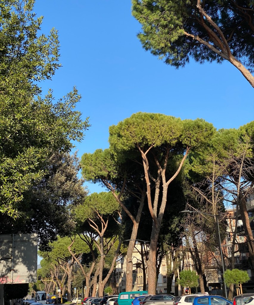One of the avenues in my new neighborhood is graced with tens of mature umbrella pines, perhaps my favorite tree of all. It’s hard to get a good picture of these massive things, but I did my best!