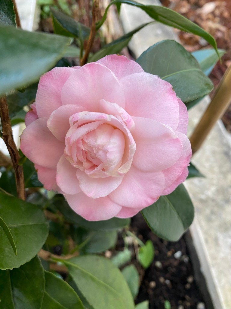 I know that some of you were dying to know if my 2 new camellia shrubs turned out to be the same variety or different. I posted about this last week and at the time, it was a mystery. I had hoped for them to be different, but who could tell when they were just in bud. Both appeared to be pink, that’s all I could say for certain.