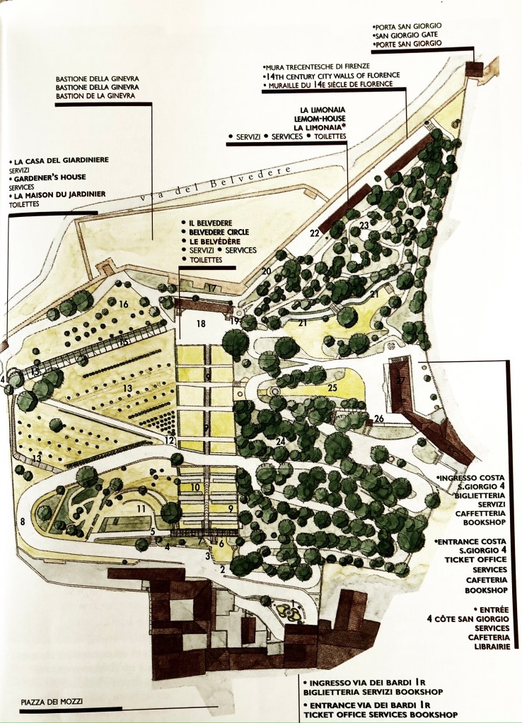 Once inside the premises, the thoughtful viewer will notice this wonderful lunette-shaped painting by Utens that depicts this unique garden in a most delightful fashion.