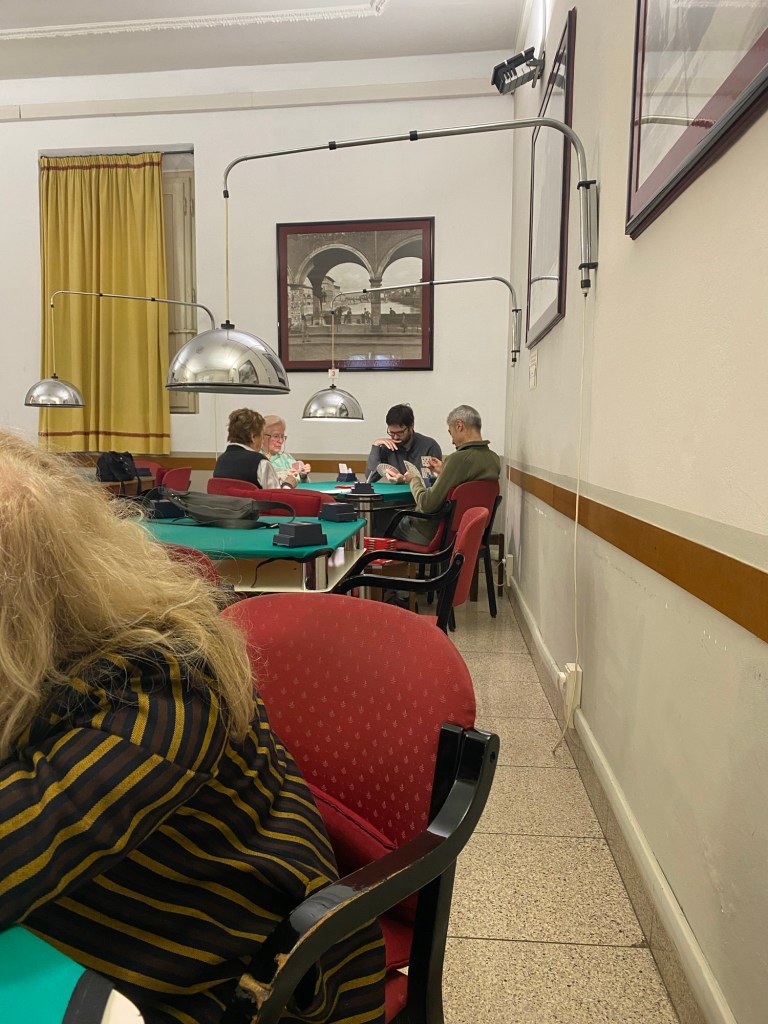 Ever since beginning my bridge journey just over 2 years ago in Denver, it’s been my goal to join other aficionados of the game in Italy. It’s a daunting prospect. I’m still learning the game and my Italian isn’t great. I can read it fairly well, can understand it well enough, but speaking is the issue for me. Regardless, I carry on and I’ve found a couple places to play in town., This place is the one that means the most to me, so far. My Italian has got to improve through this! It’s got to!