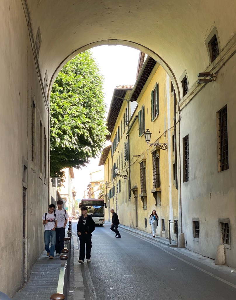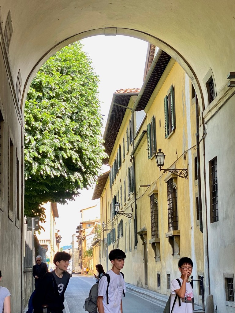 Upon leaving the loggia I walked through this covered roadway in the historic center of Florence. I have always loved this vaulted passage and it looked extra good today with the big green tree on the left side from the exquisite little garden attached to the Archaeological Museum. I couldn’t resist catching a few images.