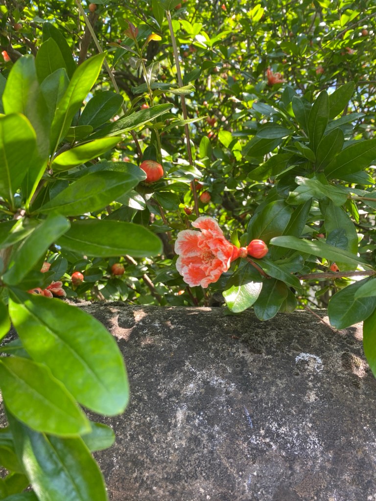 Walking from the villa to the pasticceria to catch the bus on the way back home, we passed this gorgeous shrub with spectacular blossoms. I looked it up on PlantNet app and, as I suspected, its from the pomegranate family. Lovely!