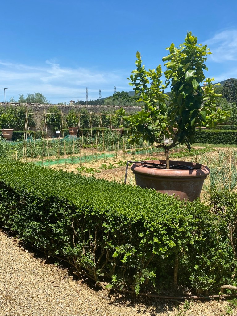Above, one enclosed section of the garden has been used to create what the French call a potager, which in Italian is orto. Both words designate a kitchen garden. And our guide told us that the researchers in charge of this newly created garden used all the plants that the records show were planted by the Medici gardeners way back when.