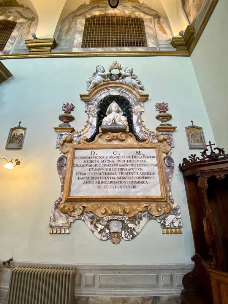 I recently posted about the garden at Villa La Quiete, which was renovated and improved by Anna Maria Luisa de’ Medici, the last Medici to survive, in the 18th century. This space was the favored residence of several important women from the Medici family. In the 17th century, Grand Duchesses Cristina of Lorraine and Vittoria della Rovere frequently visited La Quiete, which, from 1650, housed the prestigious Montalve women’s college. The villa housed a school for girls right up to the early years of the 21st century, which is kind of mind-blowing when you think about it.