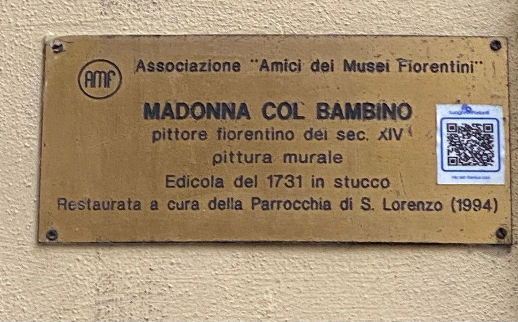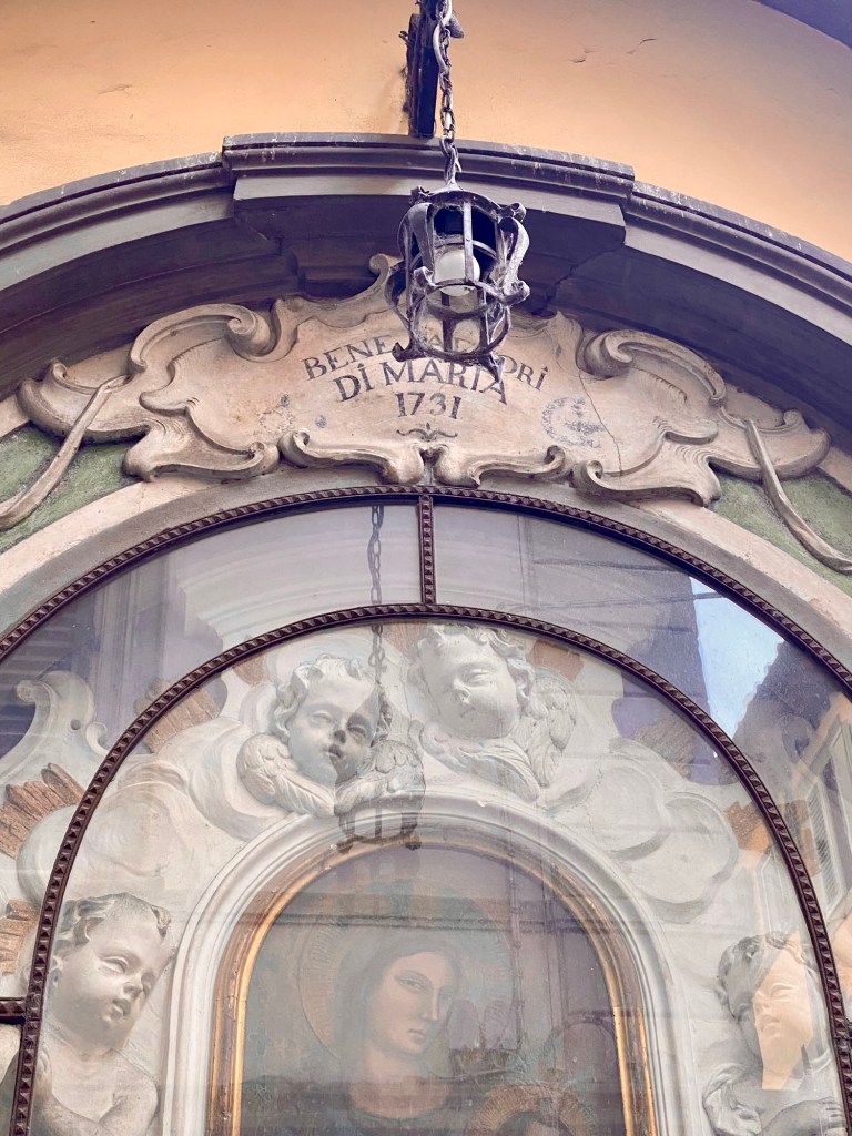 In this western section of Florence’s historic center is another of the ubiquitous tabernacles. I have posted about these before. This one is particularly elaborate, with the use of sculpture surrounding the painted images.